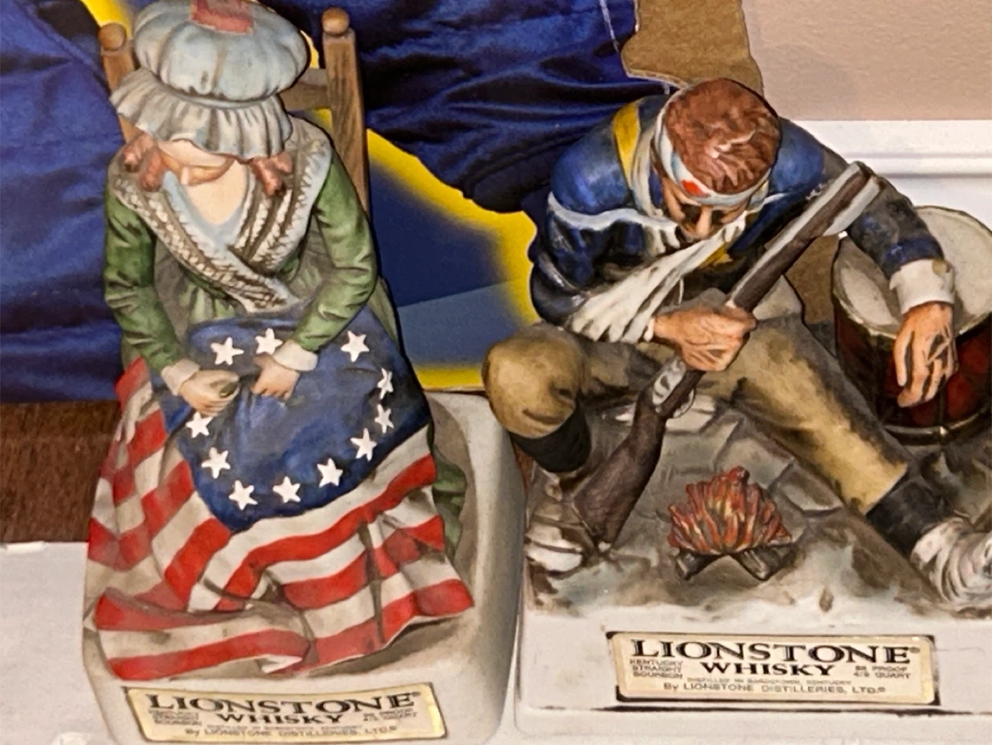 Selling a set of Lionstone Kentucky Straight Bourbon Whiskey decanters. They feature detailed figurines in patriotic scenes. Great for collectors!