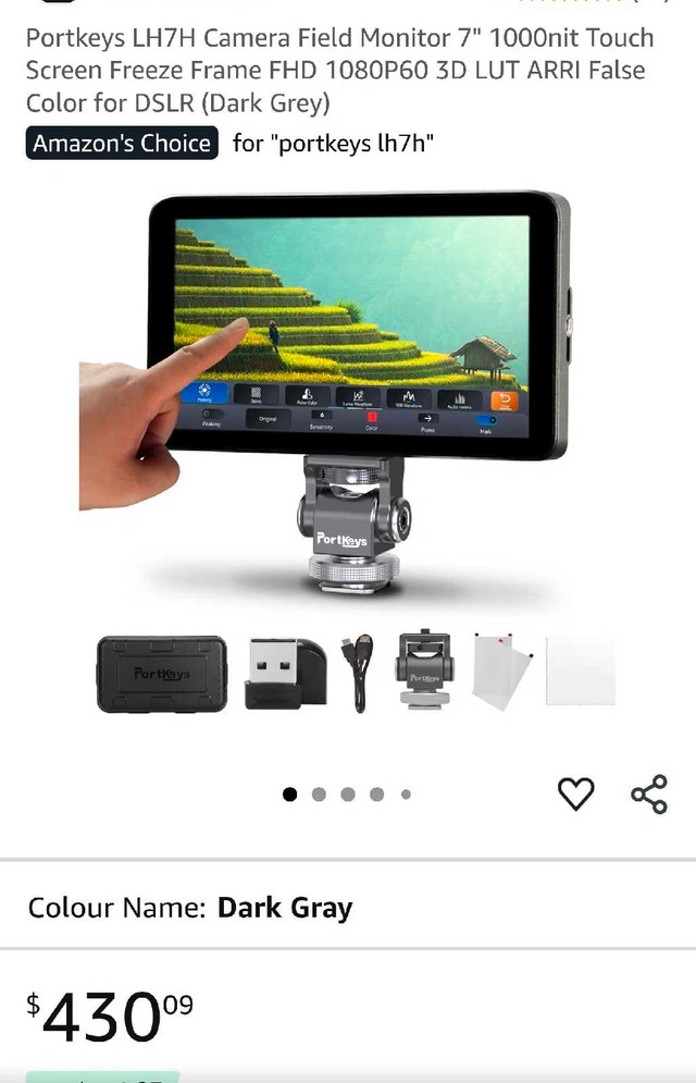 Portkeys LH7H Camera Monitor with Cage and Light Shade