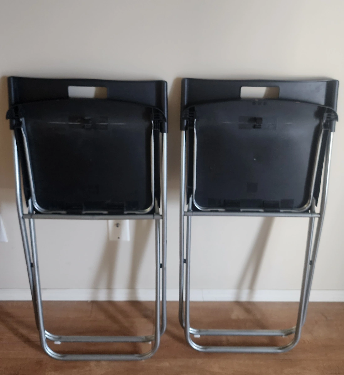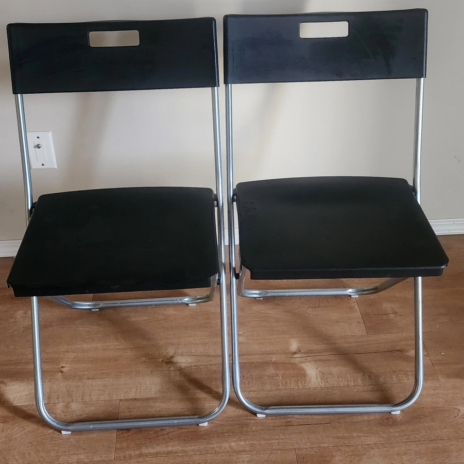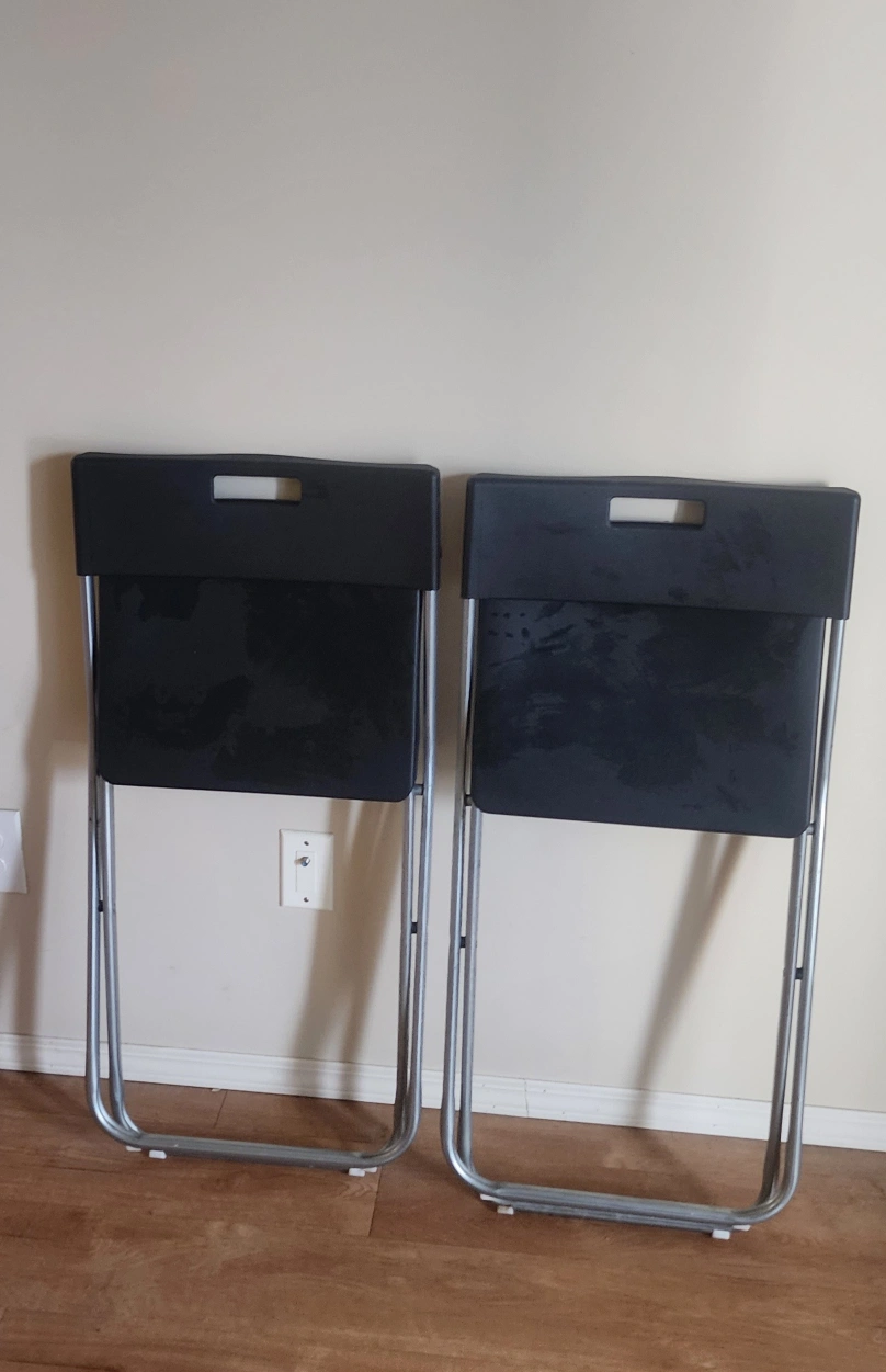 Selling a pair of black Ikea folding chairs. They're in great shape and perfect for extra seating when you have guests or for small spaces. Lightweight and easy to store.