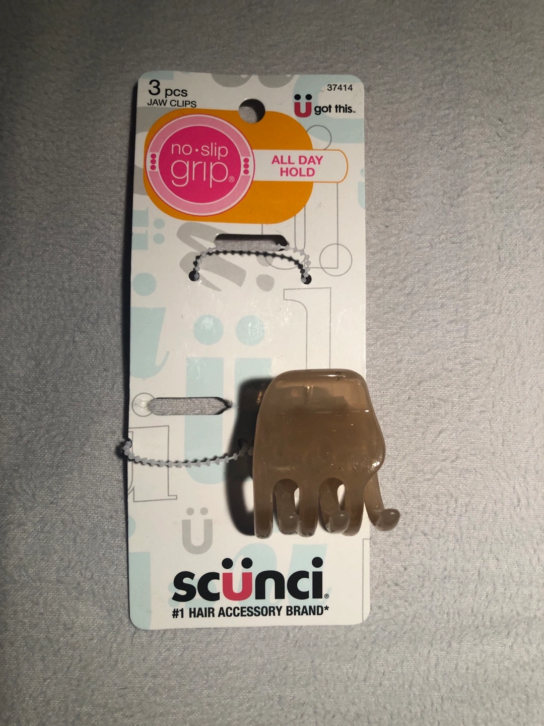 565Selling a Scunci No-Slip Grip jaw clip. These clips are designed for all-day hold and feature a no-slip grip to keep your hair in place. 3cm inside diameter, 4cm across