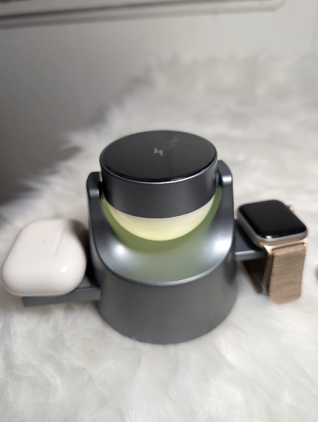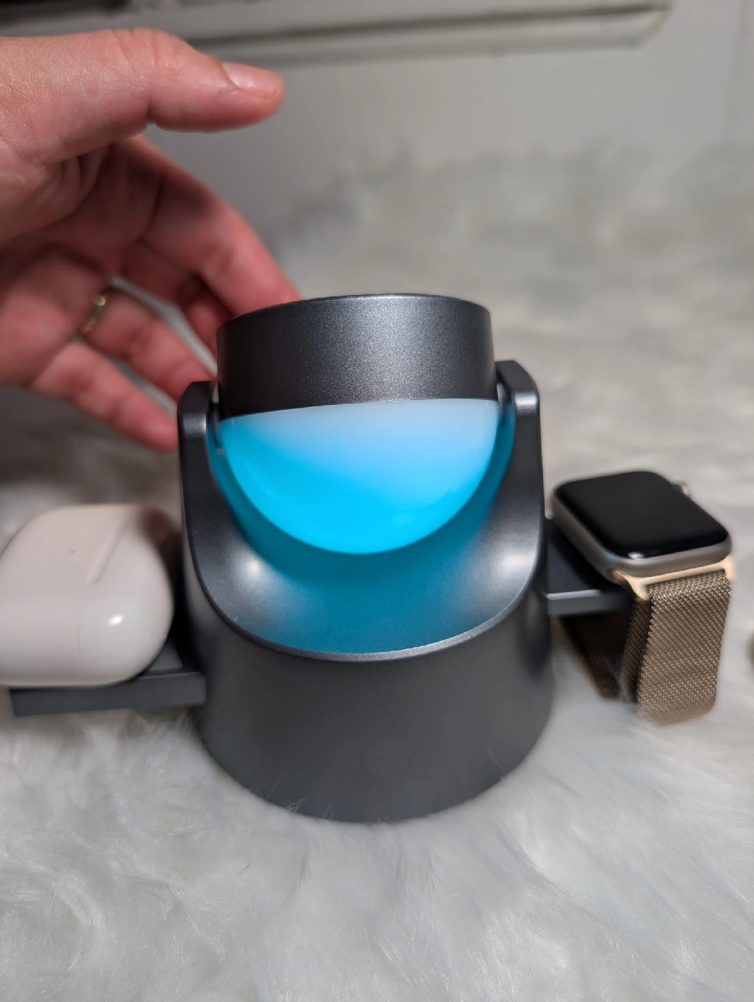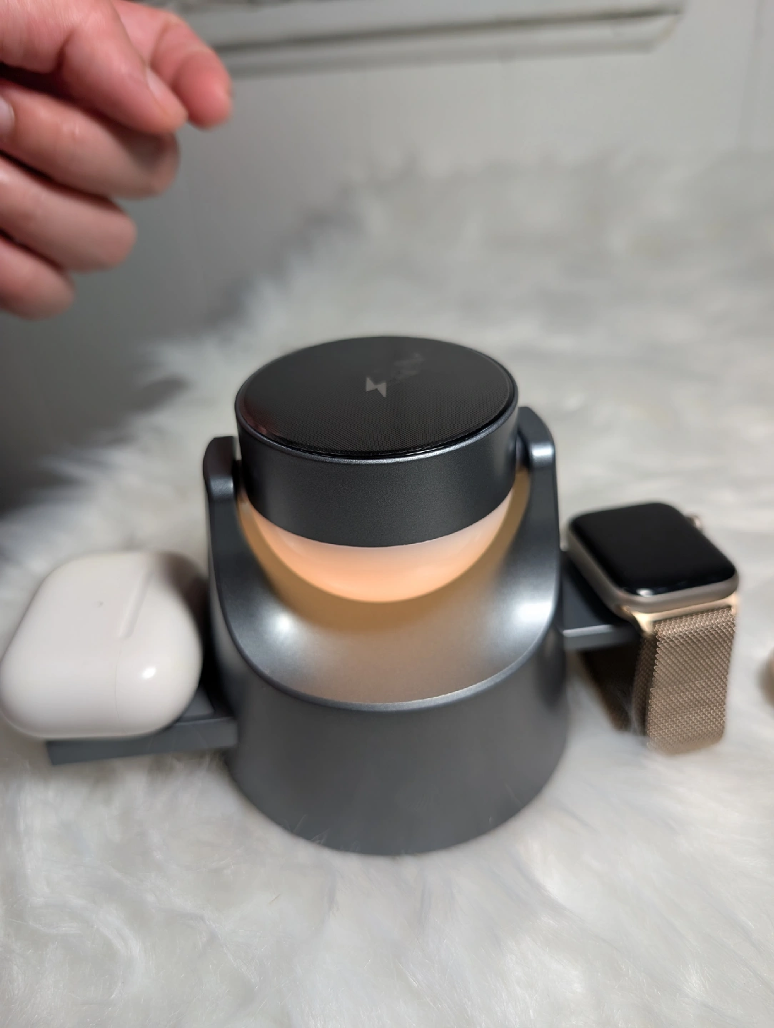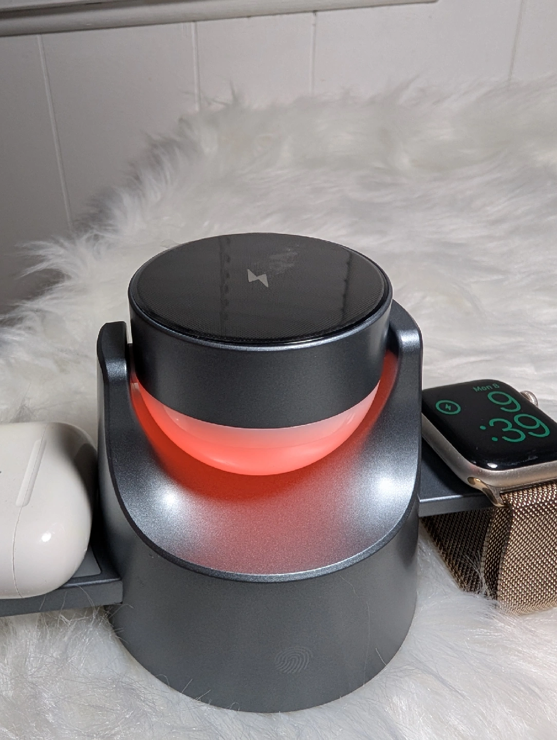 It charges your phone, Apple Watch, and AirPods all at once. It also has a cool ambient light feature with different colours