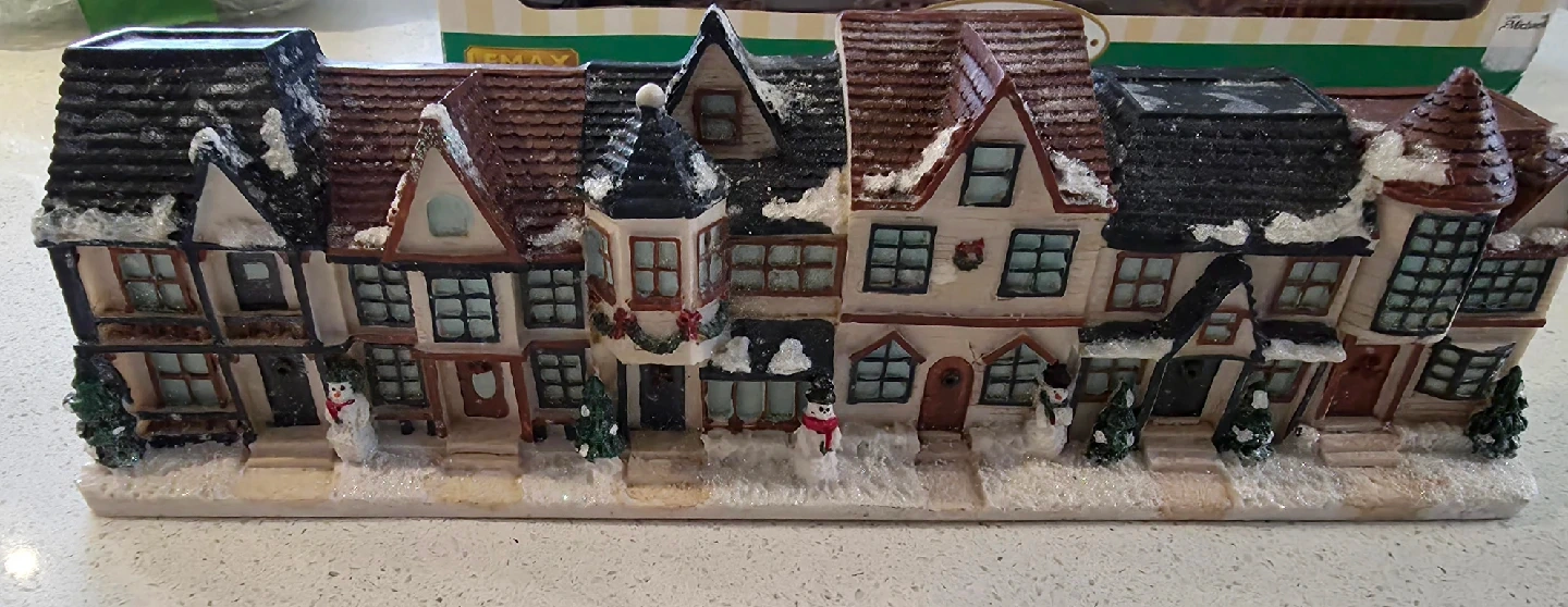 60Selling a charming Lemax Village Collection row of houses! This detailed piece brings a touch of winter wonderland to any display. Perfect for collectors or anyone looking to add a cozy, festive touch to their home decor This is for hiding the extension cord. or just by itself is very cute. measurement is a guess