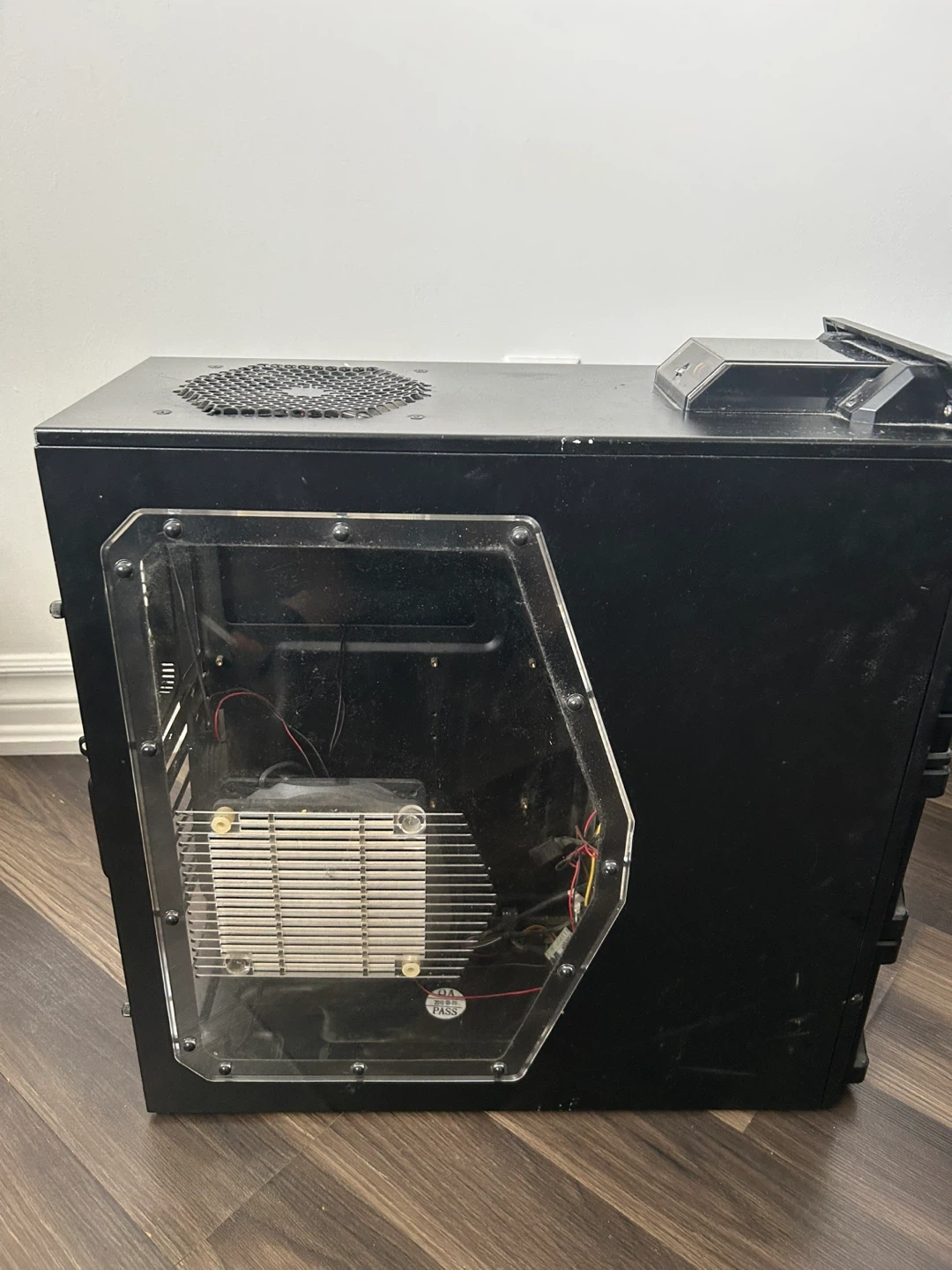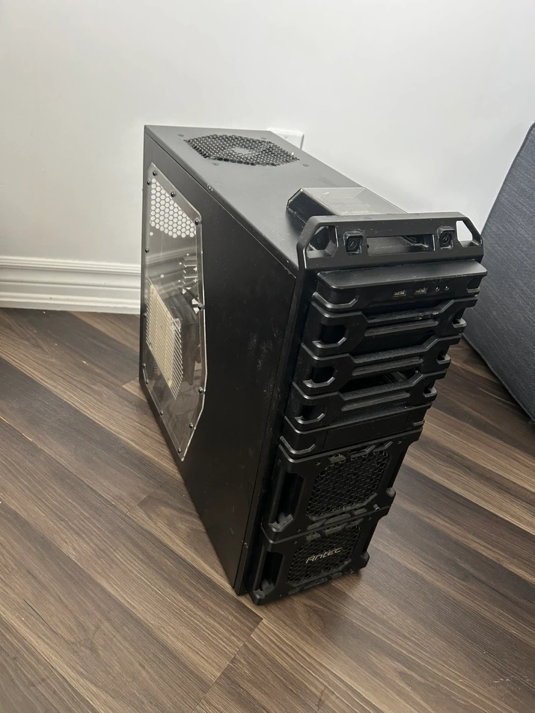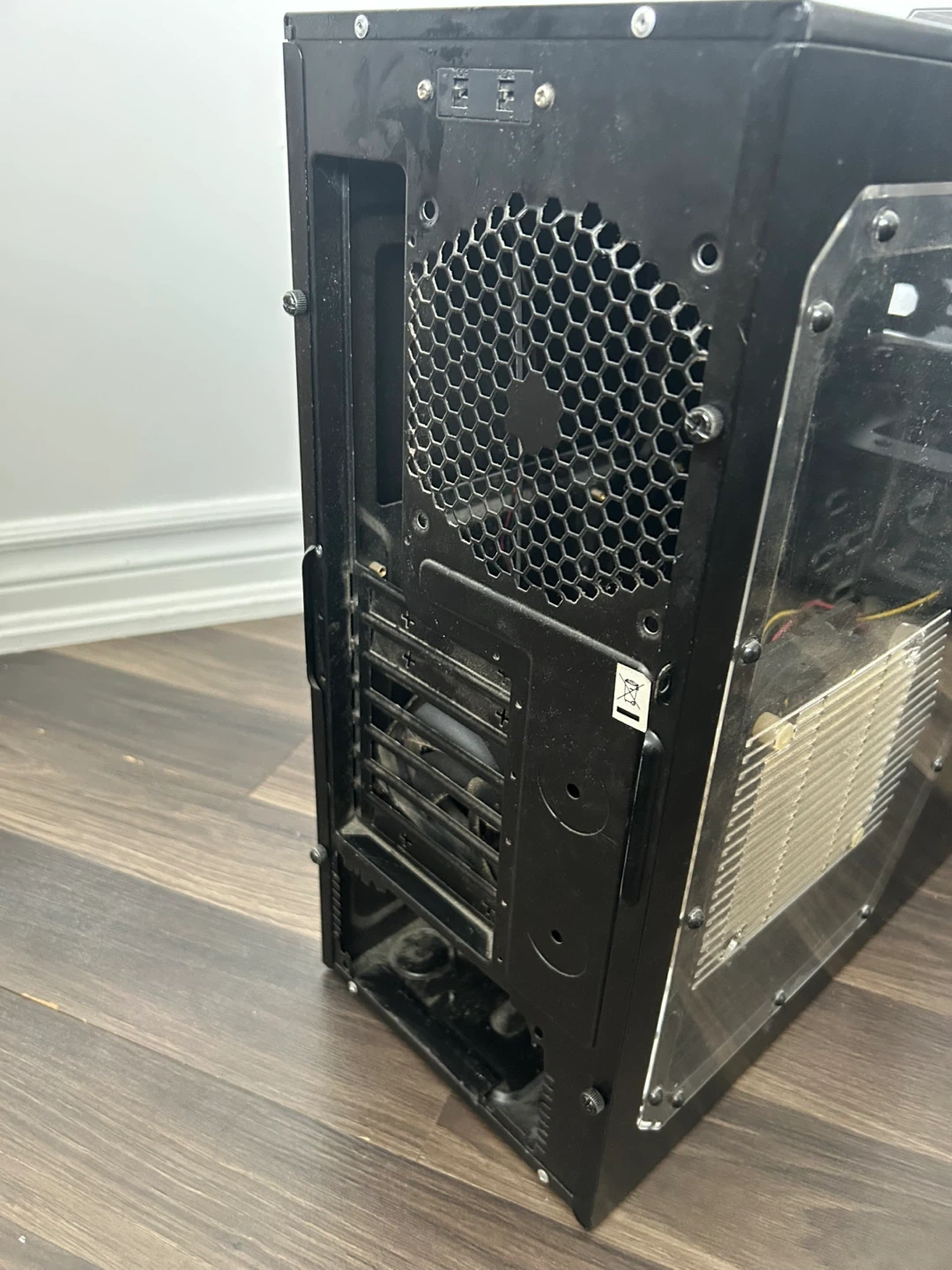 Mid tower ATX case from late 2000s/early 2010s. Removable dust filter on the front fans. SSD bay at the top of the case. No issues other than not having enough room for some of the larger video cards.