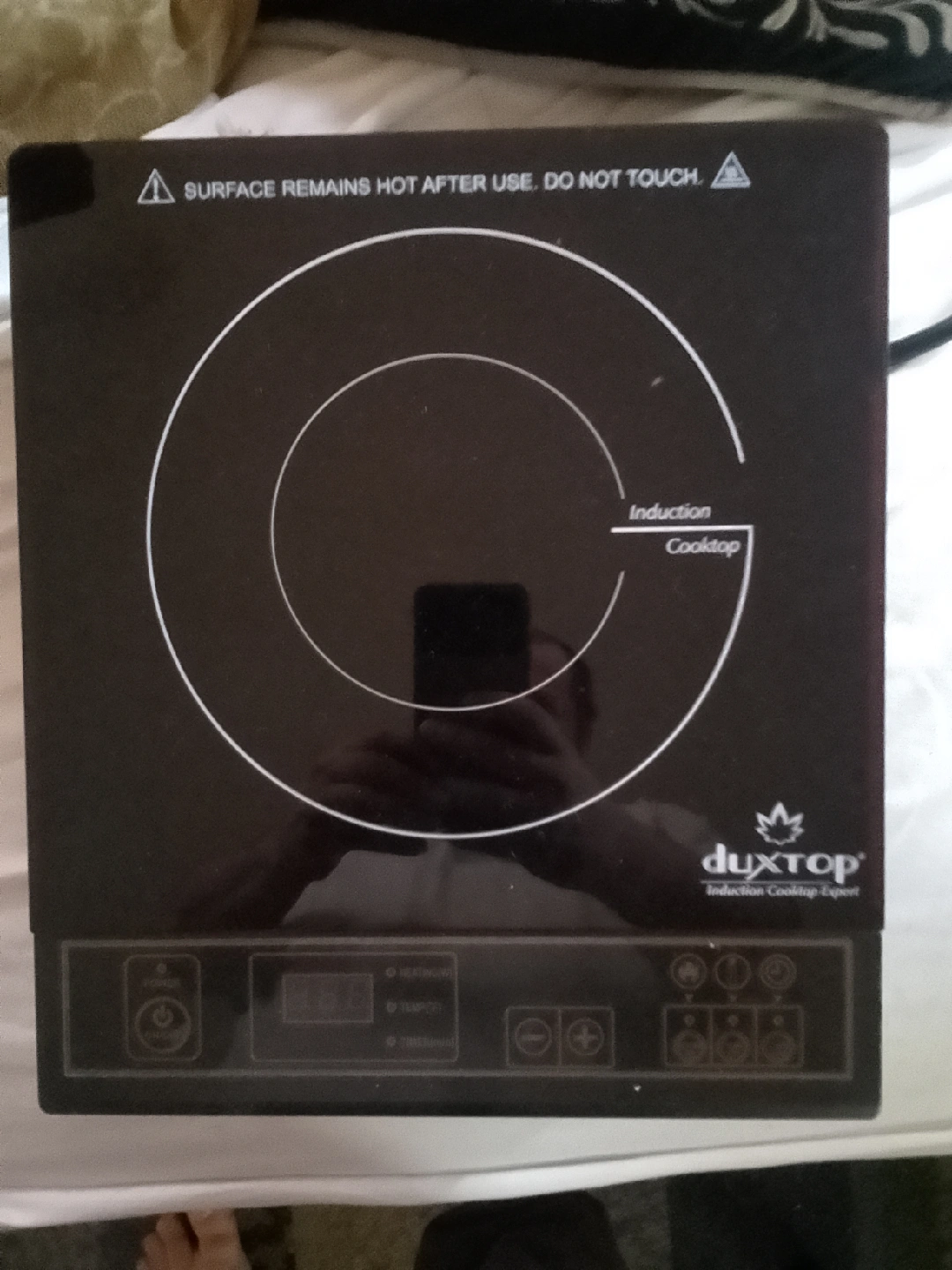 Duxtop 1800W Portable Induction Cooktop Countertop Burner, Gold 8100MC/BT-180G3 No box or manual but is BRAND NEW and has never been used $70 PLEASE NOTE: Requires induction compatible cookware. If a magnet sticks well to the bottom of the pan and is at least 5 inches in diameter, it should be compatible SPECIFICATIONS: Duxtop Induction Cooktop uses 120 V 15 amp electrical outlet - standard in all North American homes; lightweight and compact for easy handling and storage Digital control panel. Built-in count-down digital timer with 1 minute increments up to 170 minutes; 10 temperature range from 140 °F to 460 °F; 10 power levels from 200 to 1800 Watts With no open flame, food does not burn-on the glass cooktop so this induction burner is easy to clean—just wipe with a damp towel. Durable 7-blade fan rapidly dissipates heat to ensure a longer product life The auto-pan detection will shut the unit automatically after 60 seconds if no cookware is detected; equipped with diagnostic error message system, low and high voltage warning system � See more product details