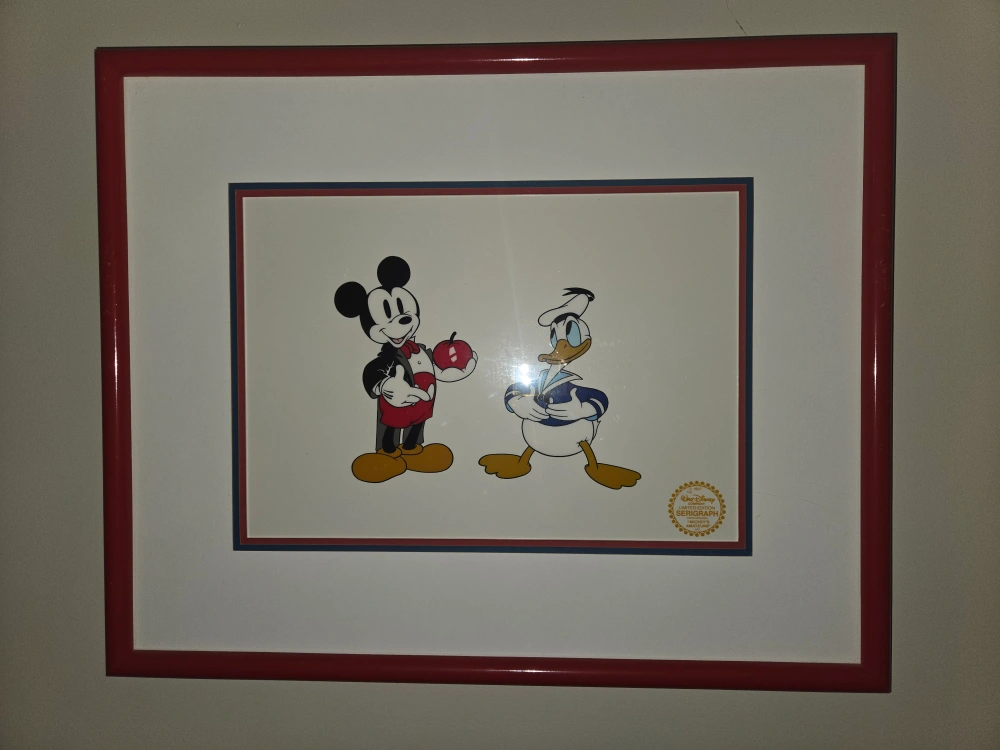 75Selling a collection of framed Disney animation art cels. Each frame features a different classic character or scene. They are in great condition and would be perfect for a Disney collector or to add a touch of nostalgia to any room!