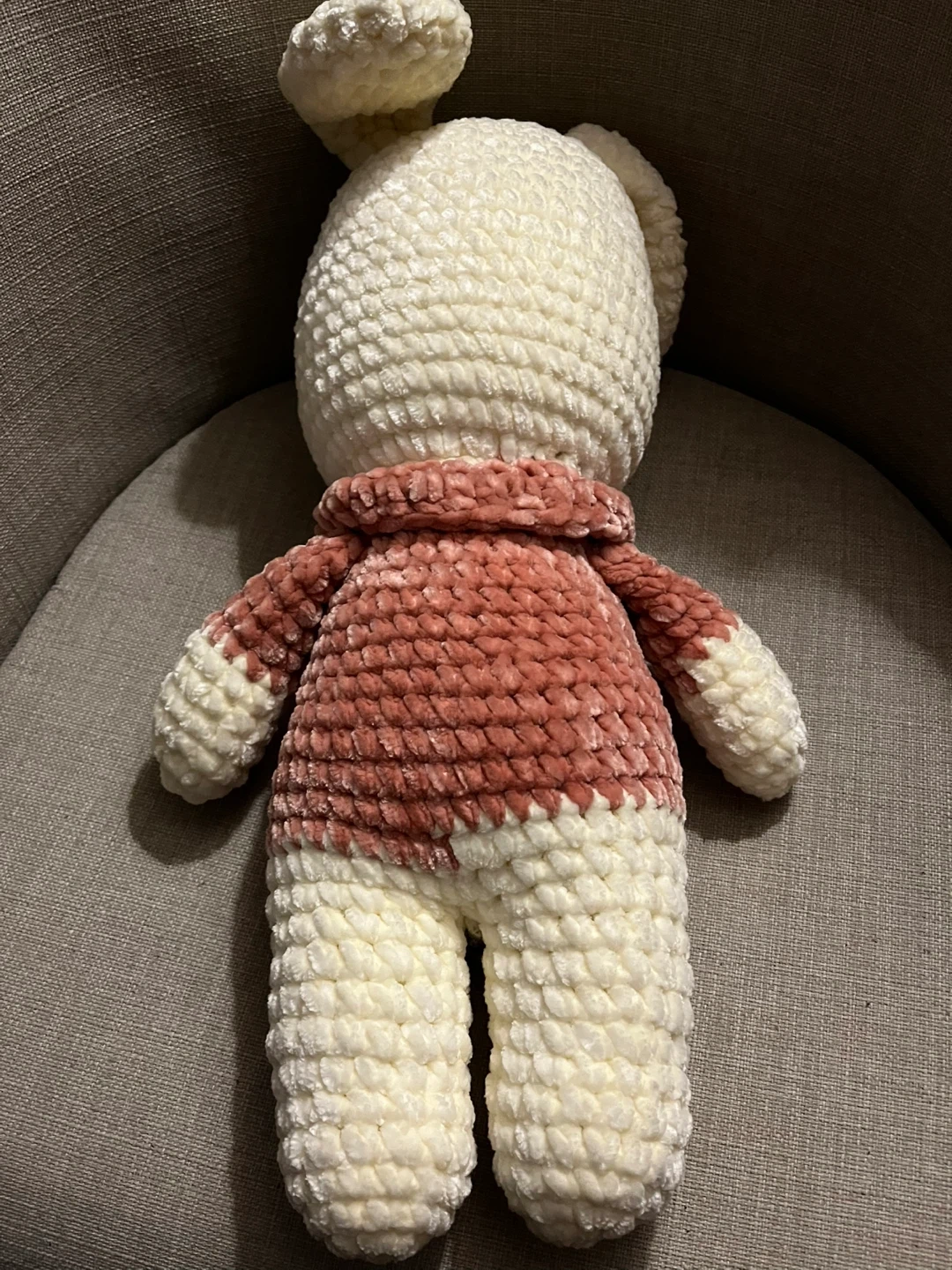 1000+🐰Selling this adorable handmade crochet bunny plushie! It's made with soft, plush yarn in cream and pink.