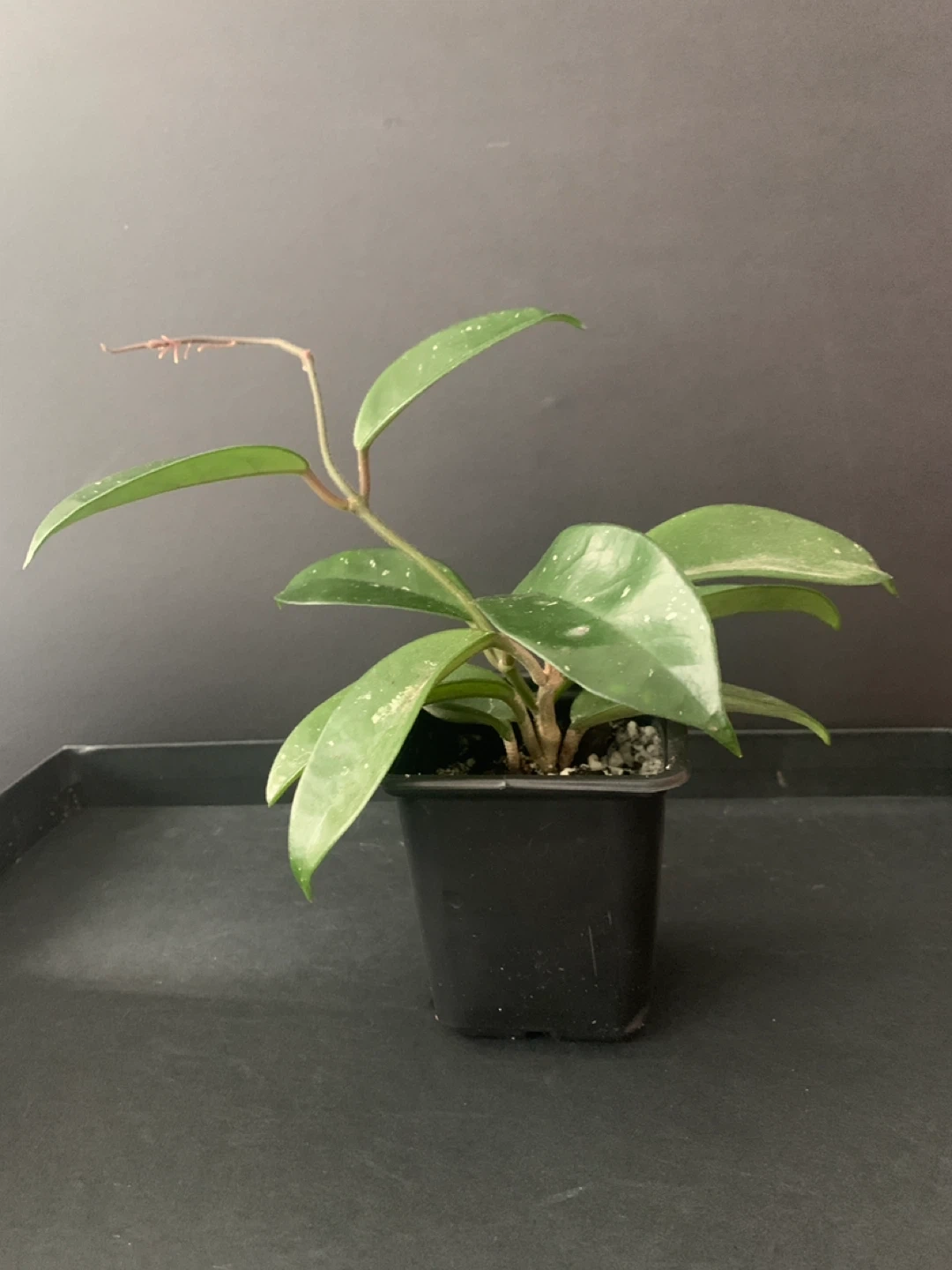 Selling a healthy Hoya plant! It's currently in a small black pot and has beautiful green leaves with some variegation. It's a great starter plant for anyone looking to add some greenery to their home