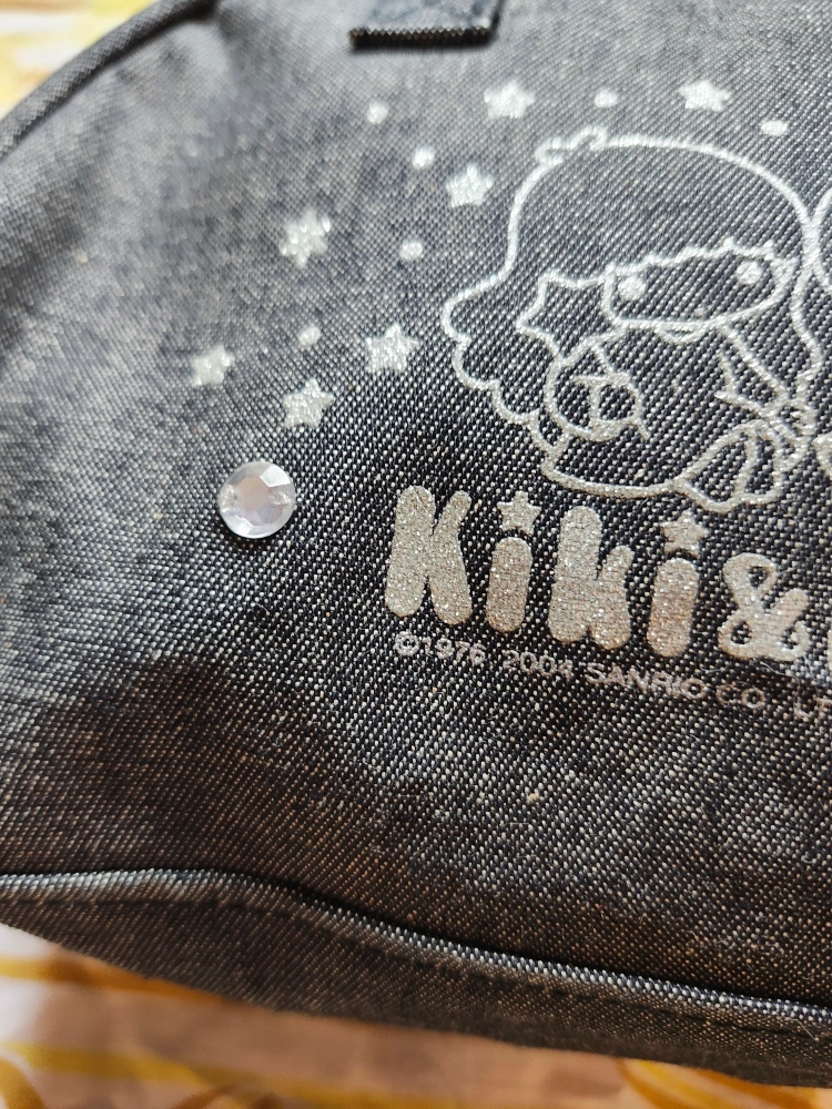 super cute 2004 Little Twin Stars Kiki & Lala bowling style bag. all the details on it are sparkly silver and the bag is smaller
