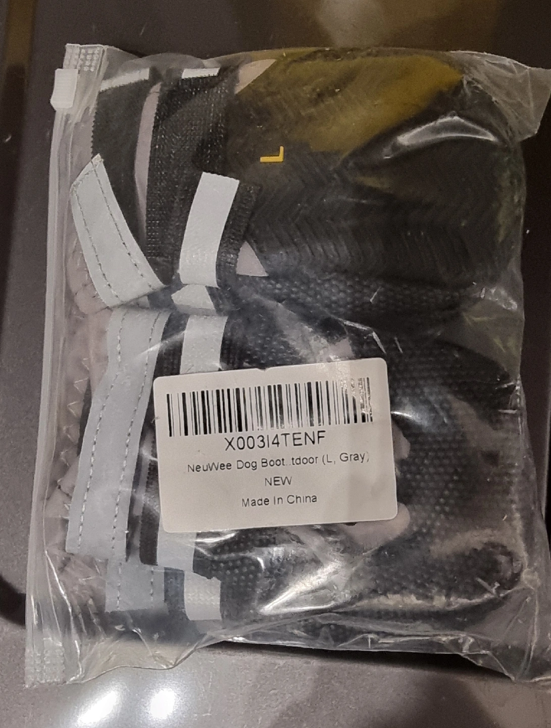 Selling a brand new pair of NeuWee dog boots in size L and gray! They're still in the original packaging and ready for your furry friend's next adventure