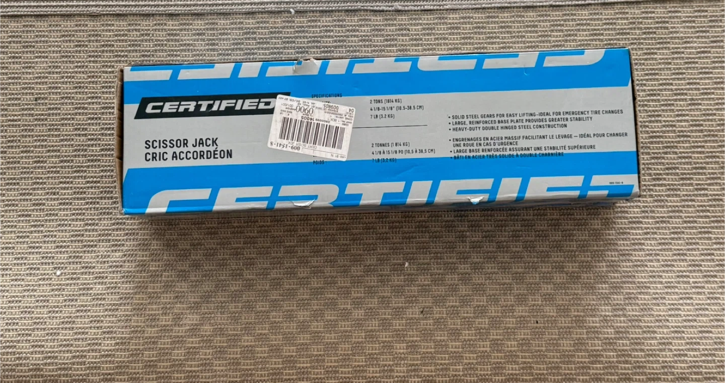 Selling a Certified Scissor Jack, perfect for emergency tire changes! It's a 2-tonne capacity jack with solid steel gears for easy lifting. The large, reinforced base plate ensures greater stability, and it's made with heavy-duty double hinged steel construction. Get it for your peace of mind on the road