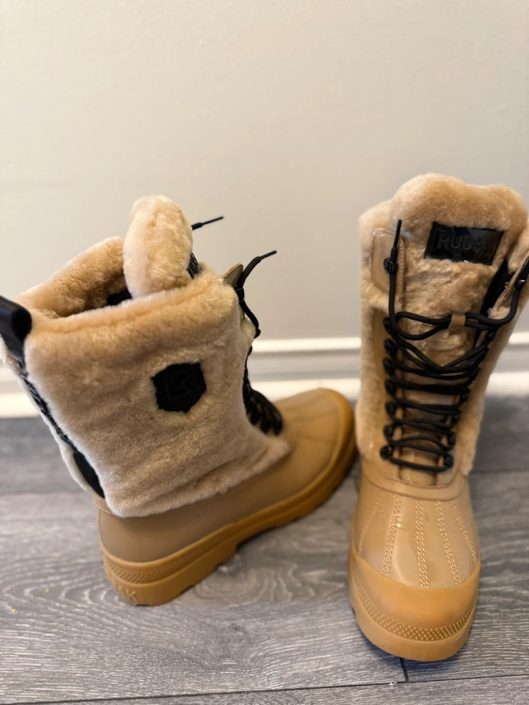10Selling a pair of Rudsak winter boots in a lovely beige colour! These boots are perfect for keeping your feet warm and dry during the cold Canadian winters. They feature a cozy faux fur lining and a durable, waterproof exterior. Stylish and practical for all your winter adventures!