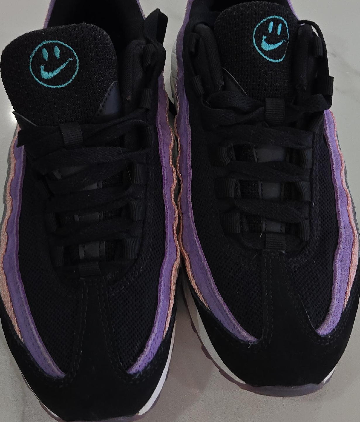 Selling a pair of Nike Air Max 95 SE running shoes! They feature a stylish black, purple, and turquoise colourway. These shoes are great for running or casual wear. They're in good condition and ready for a new home