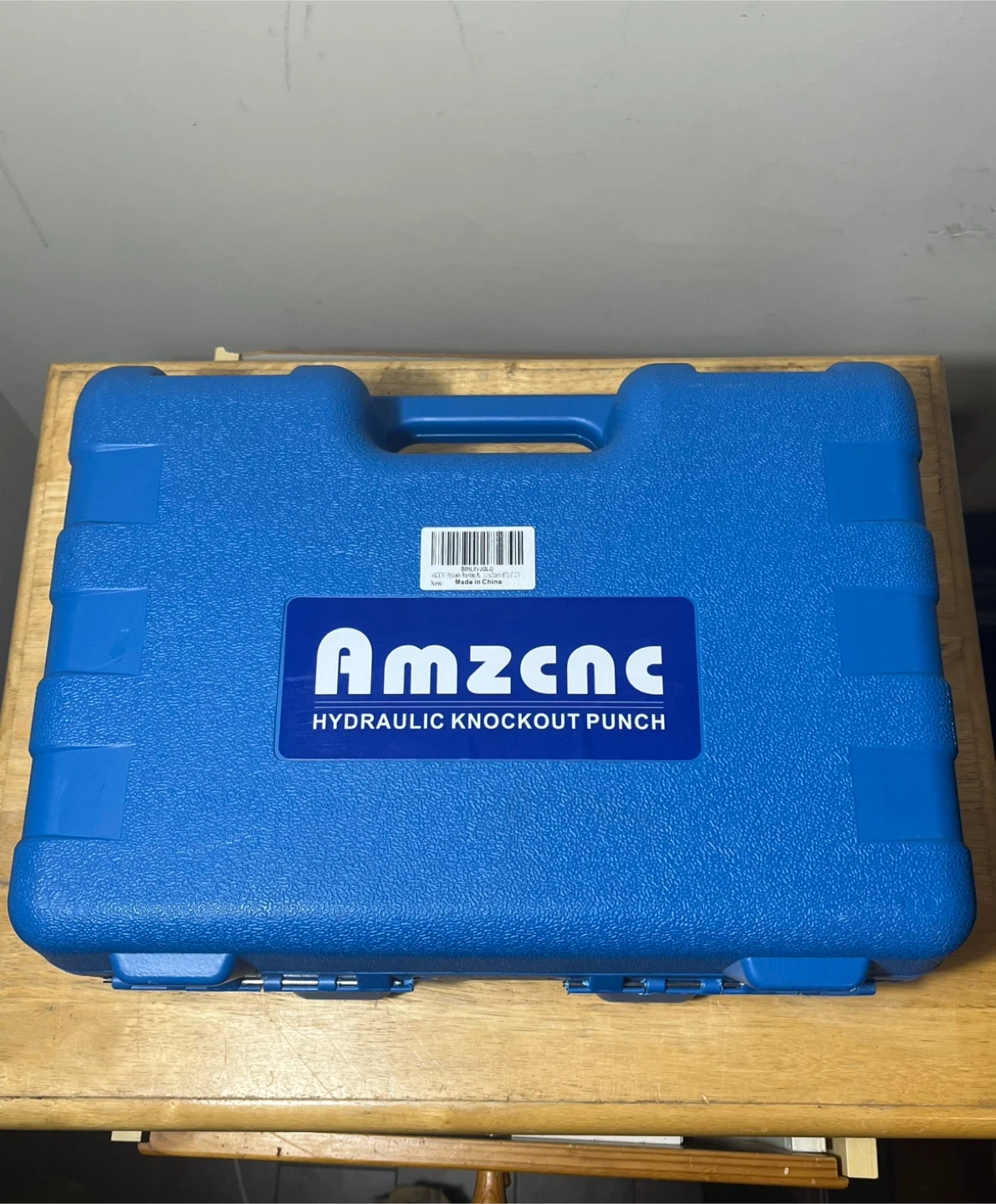 Selling an AMZCNC hydraulic knockout punch electrical conduit hole cutter kit. It's in great condition and comes with the original blue carrying case and instructions. The kit includes various sizes for different applications. The size is 8T (1/2"-2"). Originally bought for $242.09