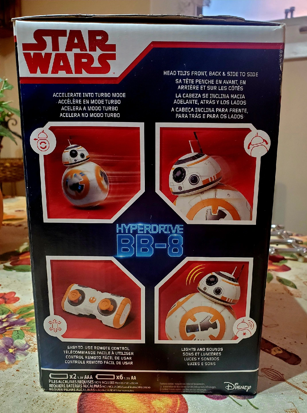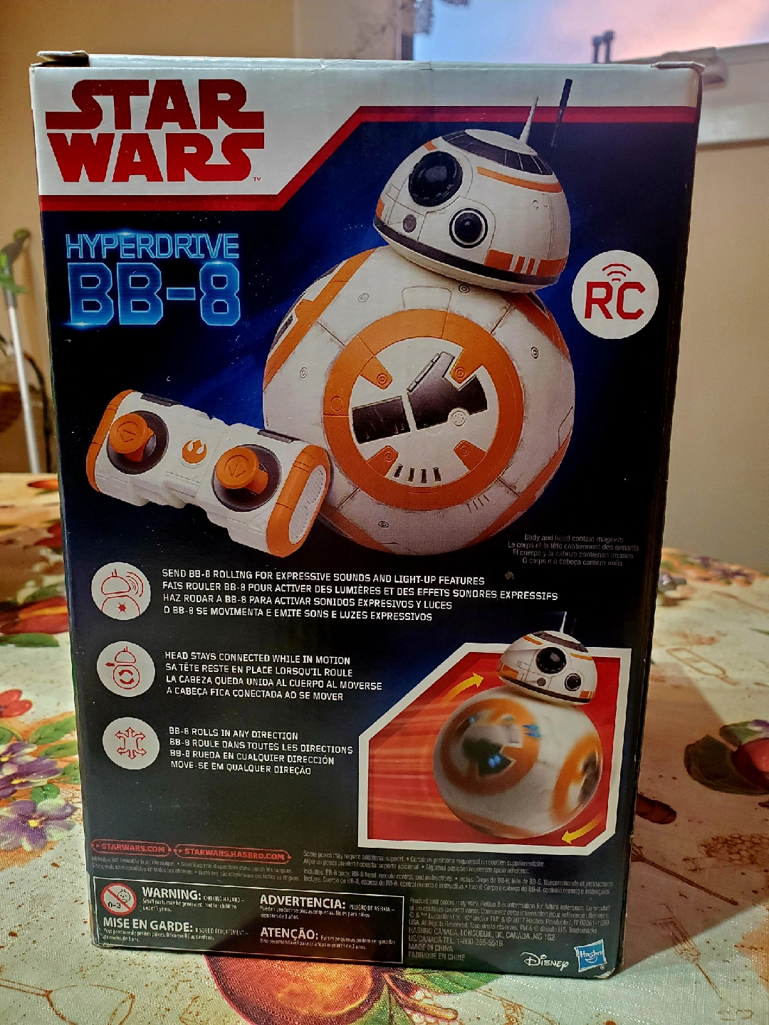 Selling a Star Wars Hyperdrive BB-8. It accelerates into turbo mode and has lights and sounds. Head tilts front, back and side to side. Easy to use remote control. Recommended for ages 5+ NEW STILL IN BOX