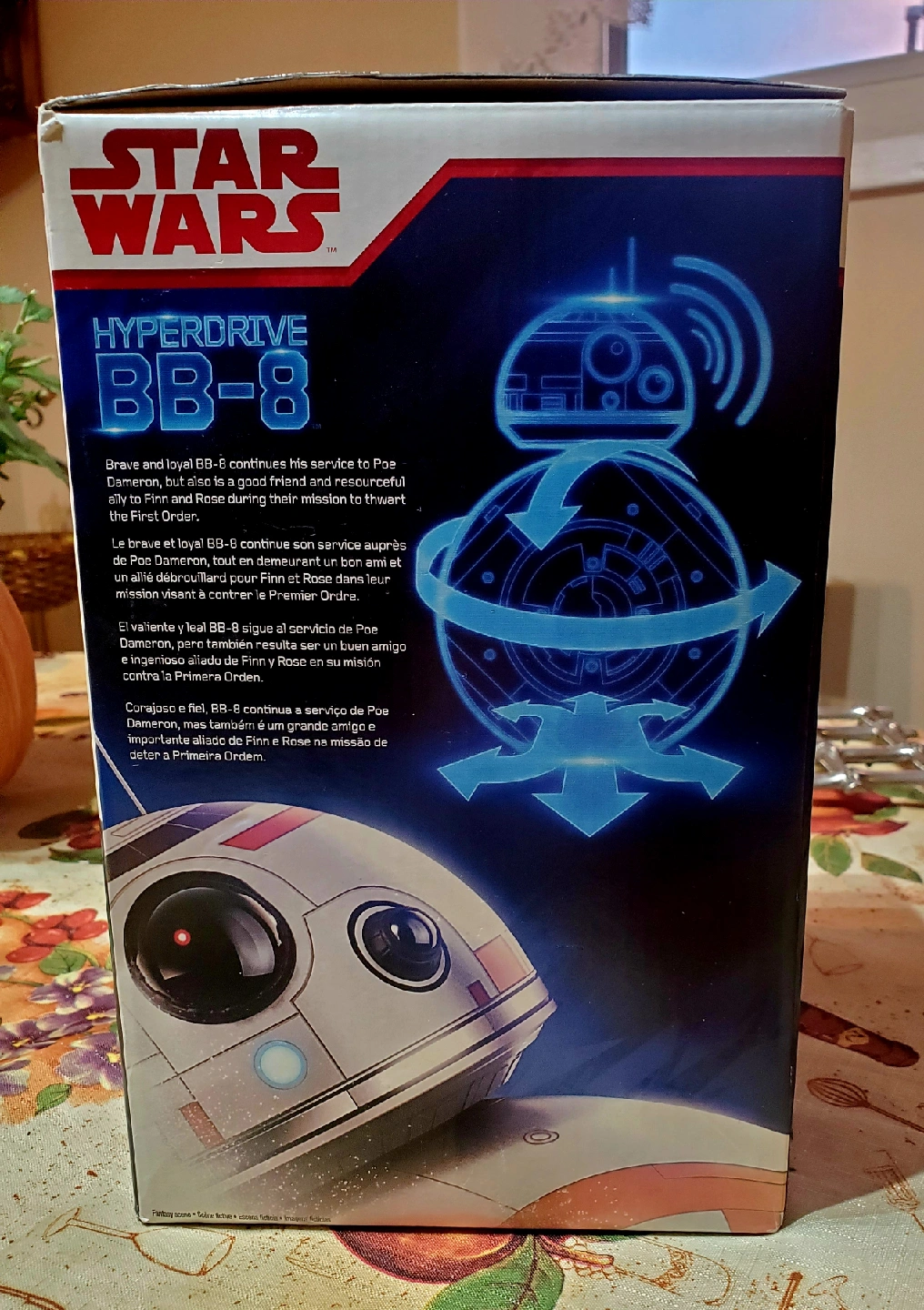 Selling a Star Wars Hyperdrive BB-8. It accelerates into turbo mode and has lights and sounds. Head tilts front, back and side to side. Easy to use remote control. Recommended for ages 5+ NEW STILL IN BOX