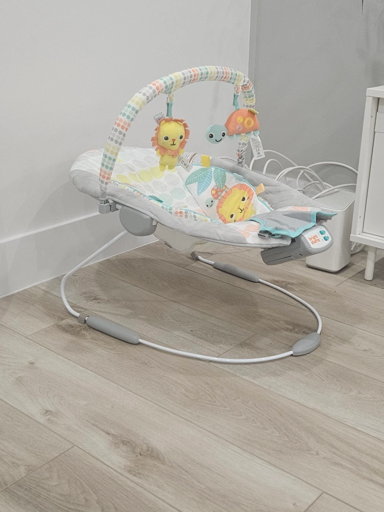 Selling a Bright Starts baby bouncer in great condition! It features a playful design with cute animal characters. Perfect for keeping your little one entertained and comfortable. It's lightweight and easy to move around the house