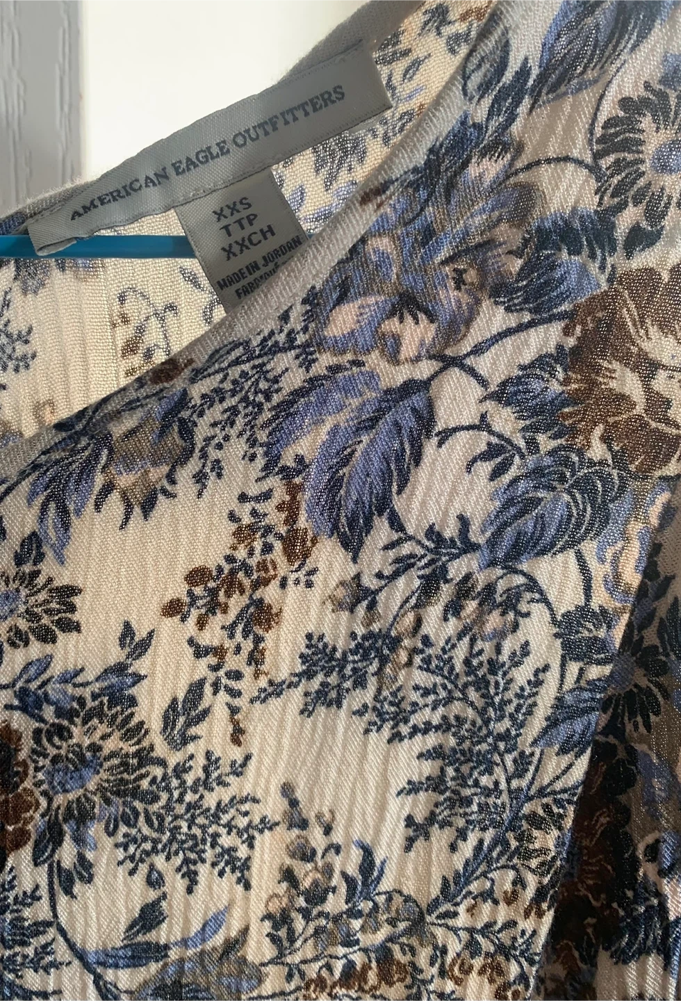 Selling a cute American Eagle Outfitters floral dress in size XXS. It's in great condition and has a lovely floral pattern, perfect for any occasion!