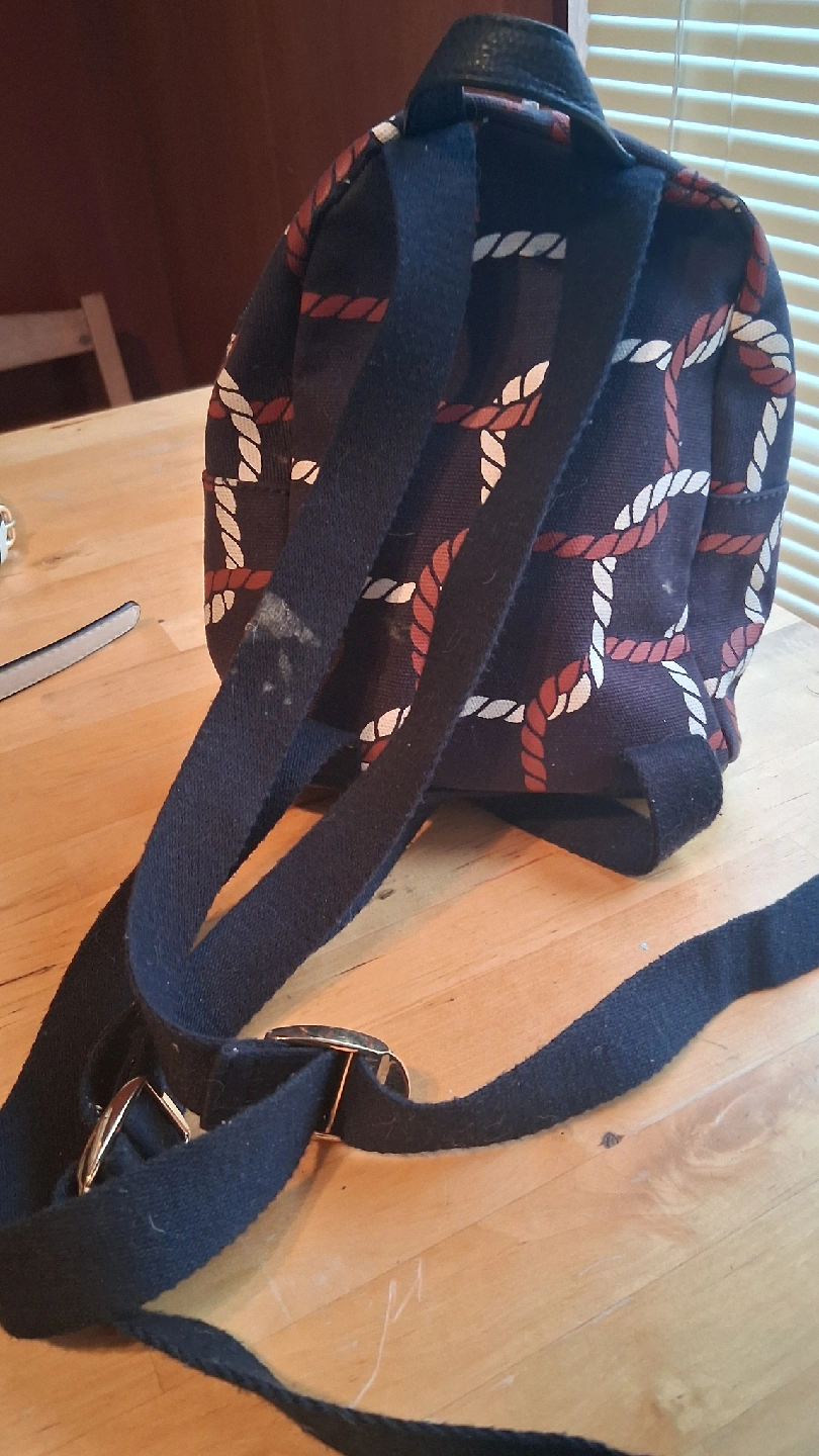 65Tommy Hilfiger mini backpack in good condition! It's a cute little backpack with a navy blue, red and white rope pattern. Perfect for carrying small items!