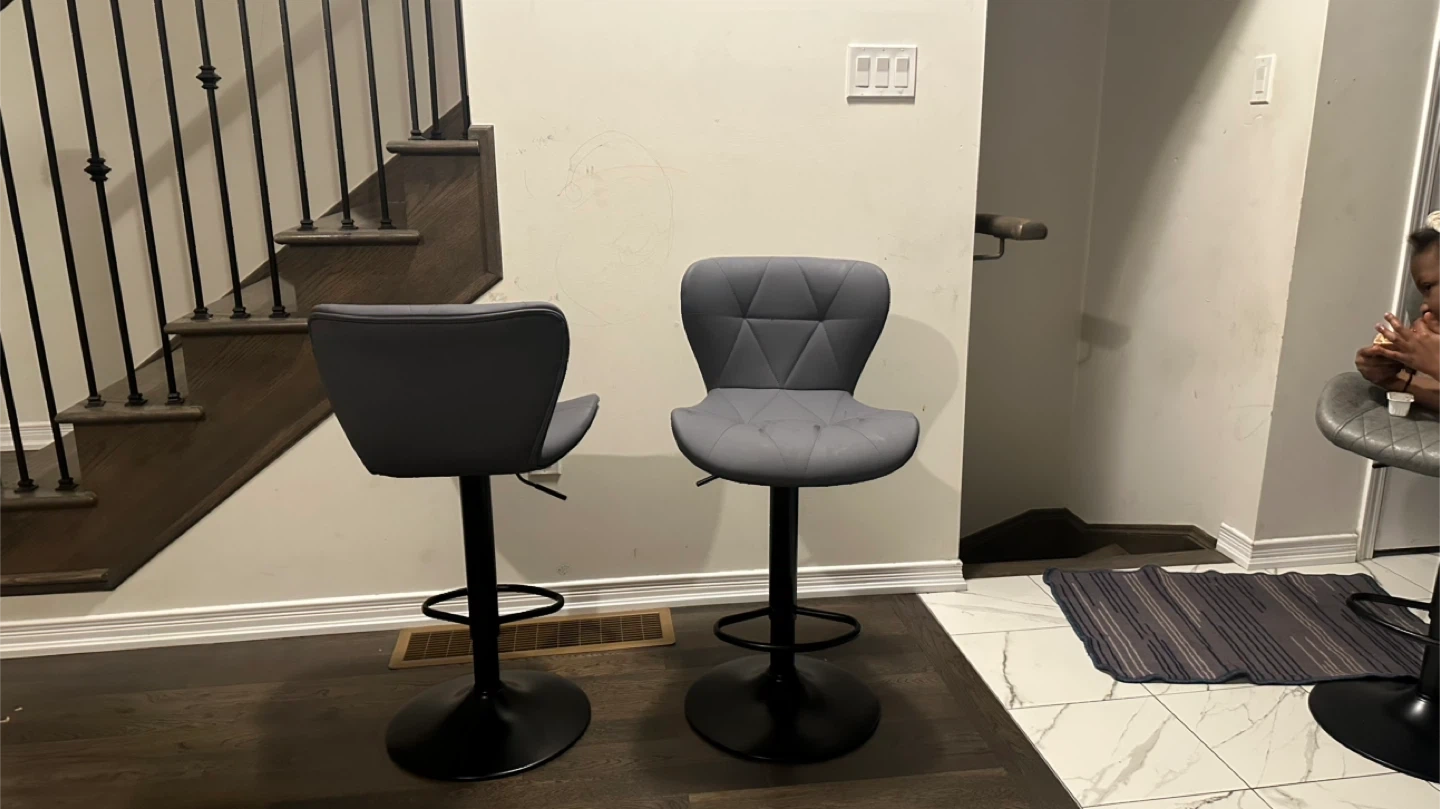 Selling a set of two stylish grey bar stools! They're in great shape and would look fantastic in any kitchen or bar area. The modern design and comfortable seating make them perfect for casual dining or entertaining guests