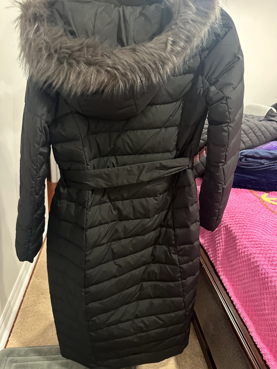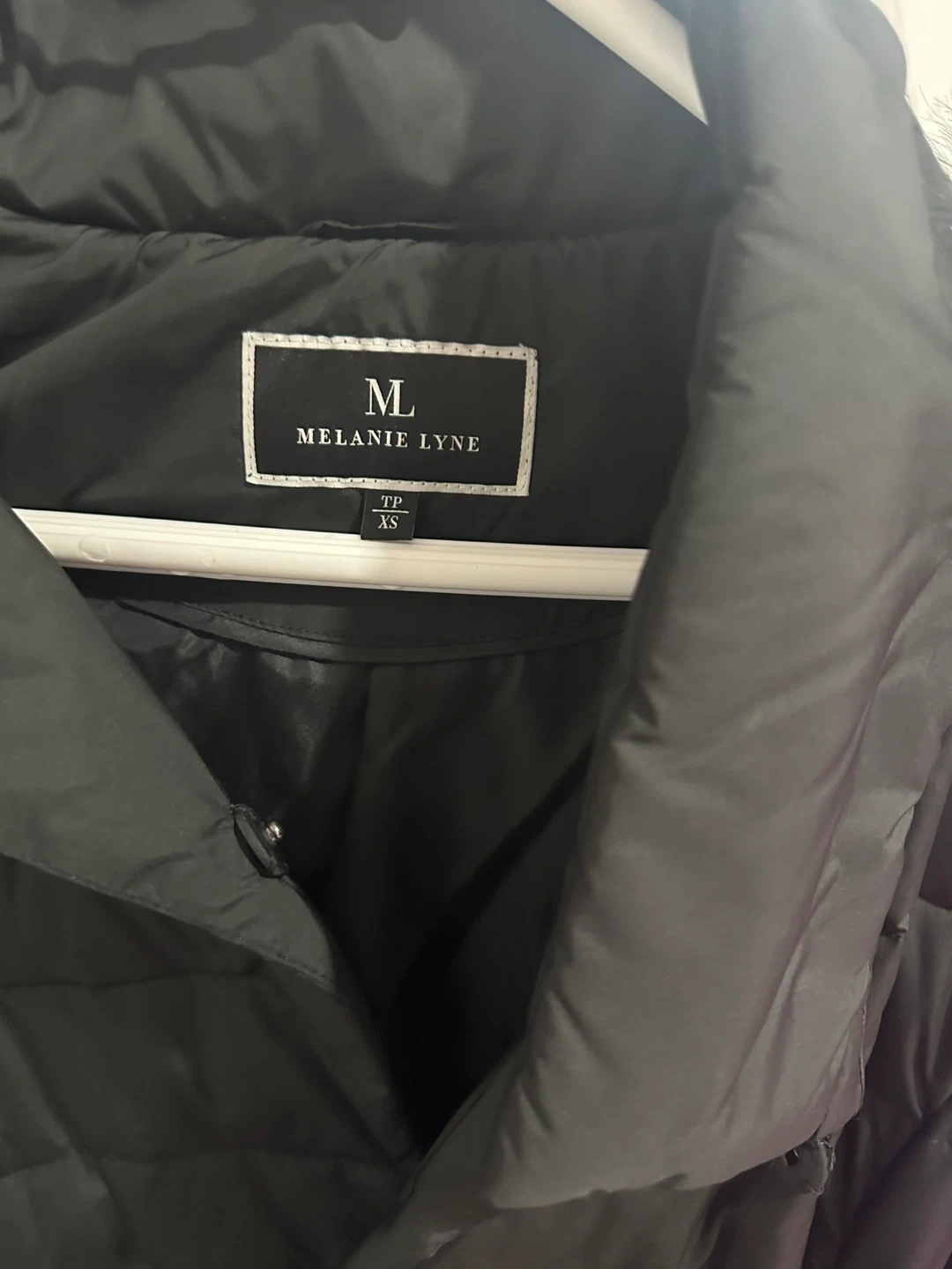 10Melanie Lyne Down-Filled Winter Coat - XS Cozy up this winter with a beautiful down-filled coat from Melanie Lyne! It's in great condition and features a stylish belted waist and faux fur trim. Size XS
