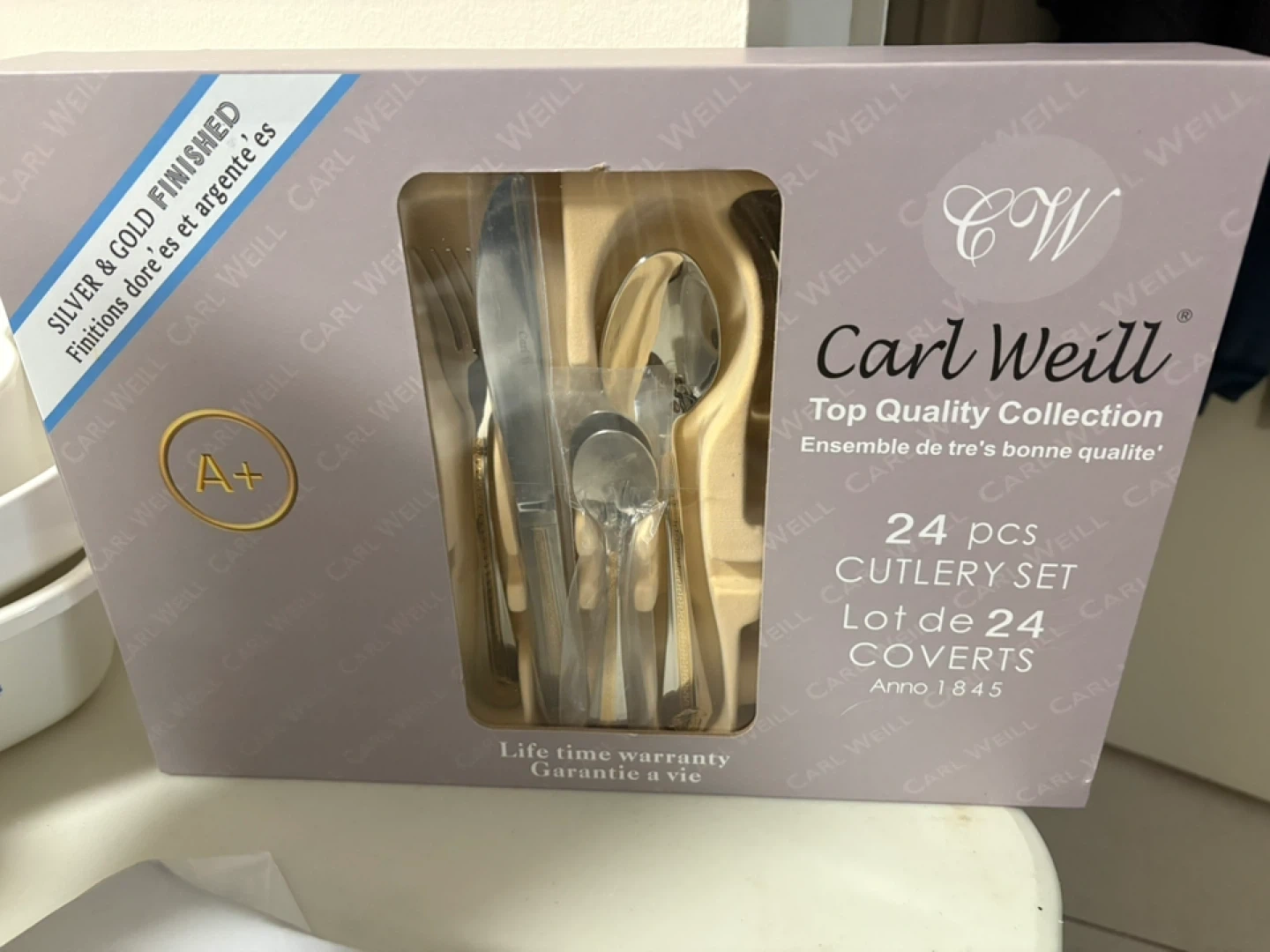 56Selling a brand new Carl Weill 24-piece cutlery set! This top-quality collection comes in its original box and includes a complete set of covers for 24 people. The set features a silver and gold finish, adding a touch of elegance to your dining experience