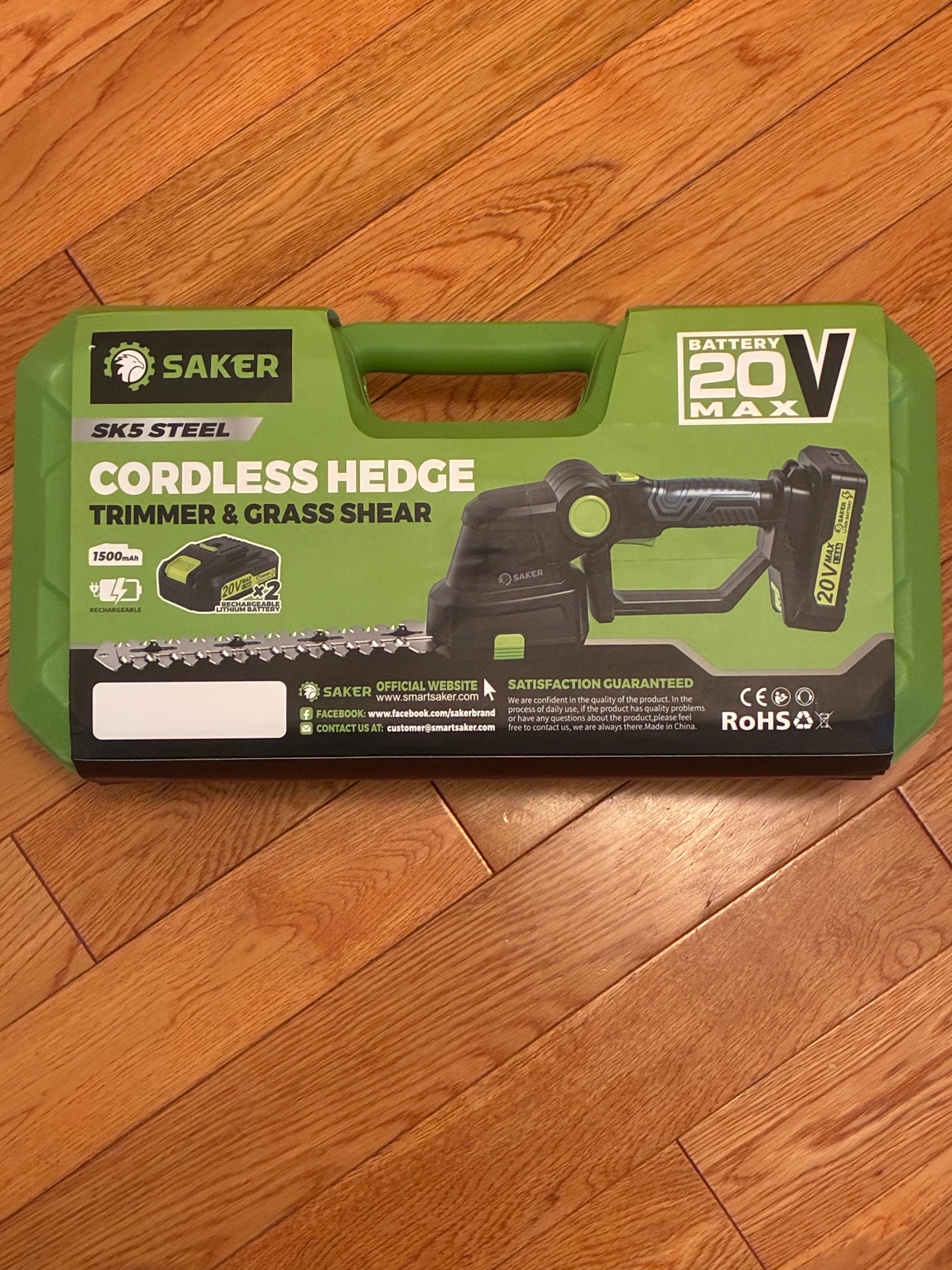 11Saker: SK5 Steel Cordless Hedge Trimmer & Grass Shear, Li-Ion battery 20V Includes trimmer (head and shears), 2 Li-Ion batteries, one box Brand new. Original packaging. Never used. Original price: $140 Now only $110