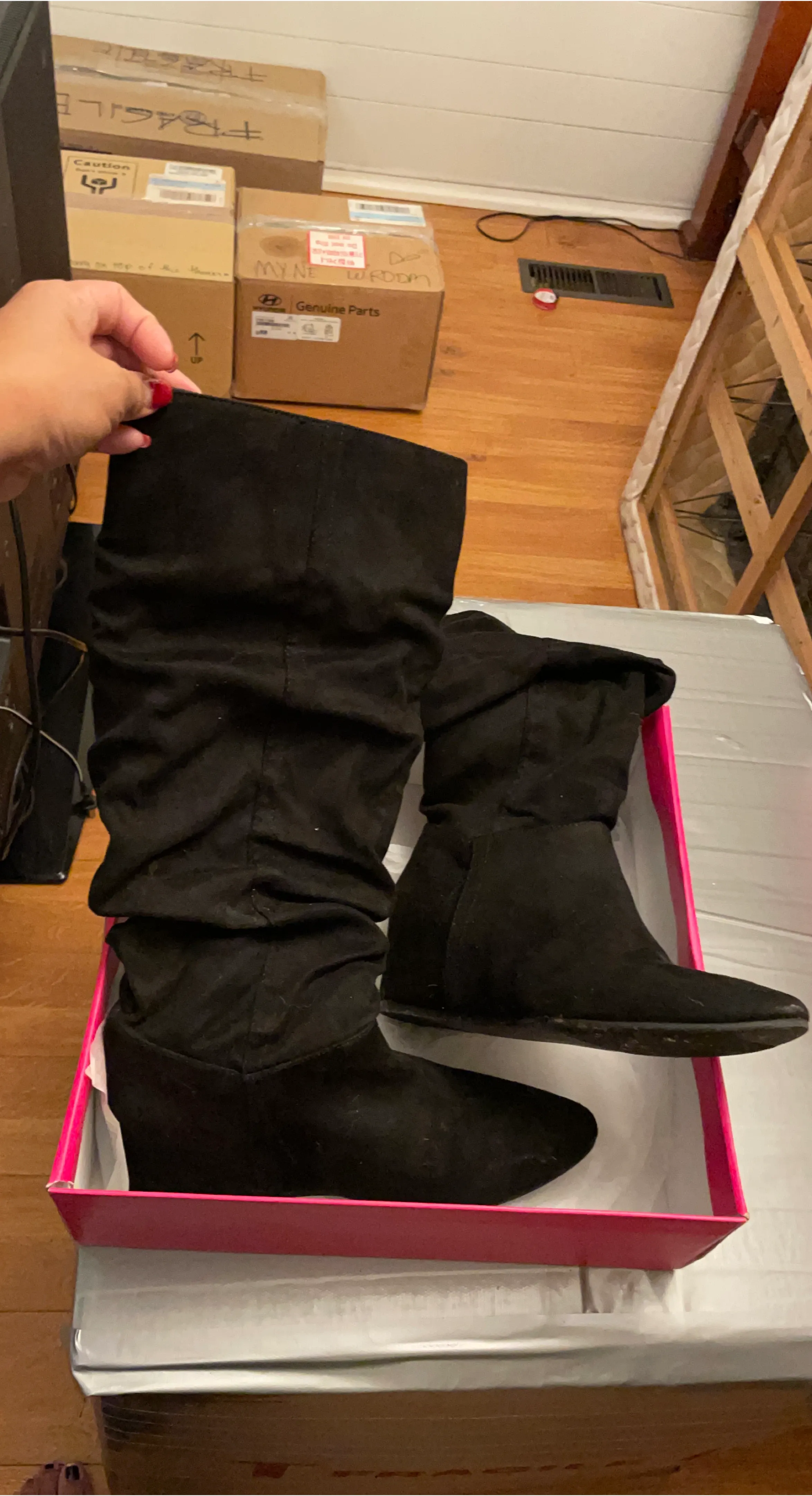 Selling a pair of ShoeDazzle black heeled boots in size 7! They're in great shape and come with the original box. Perfect for adding a bit of style to your outfit. Wear 3 times…