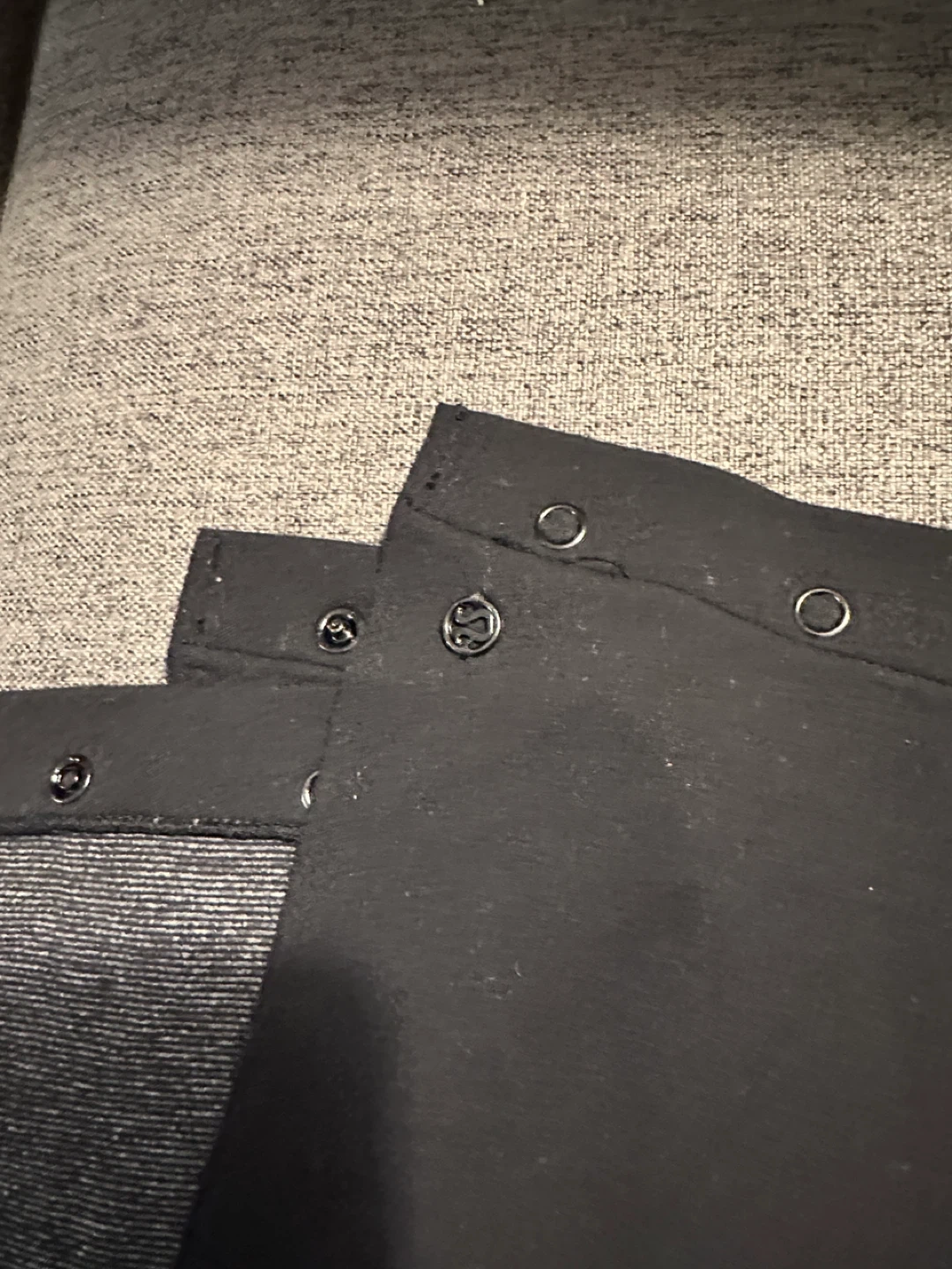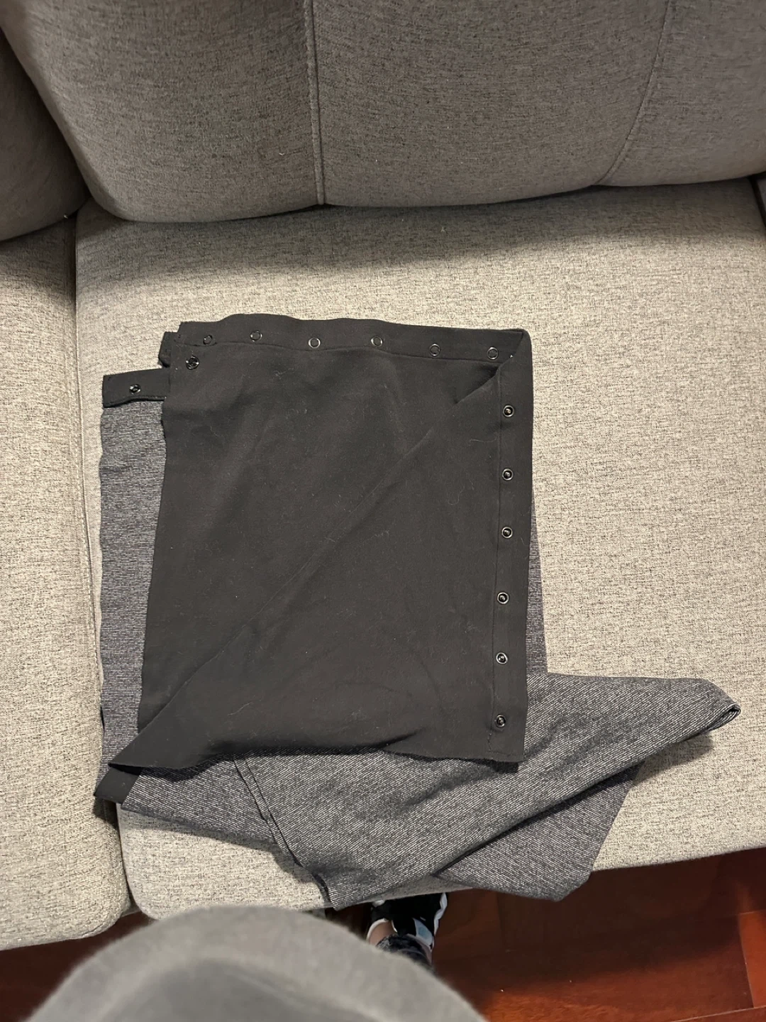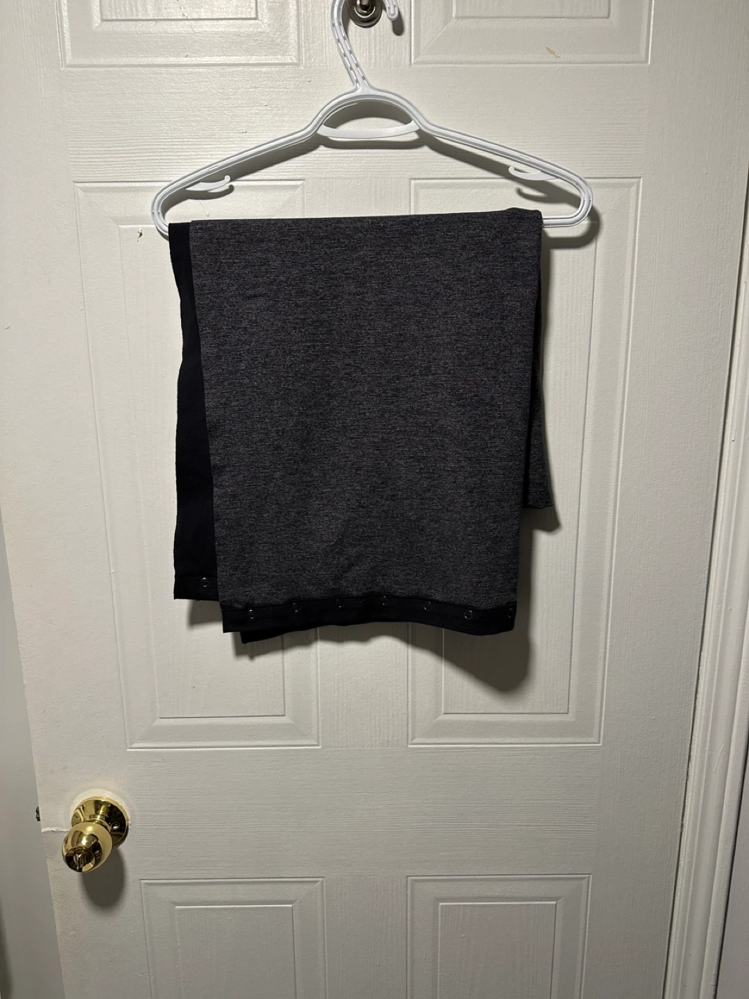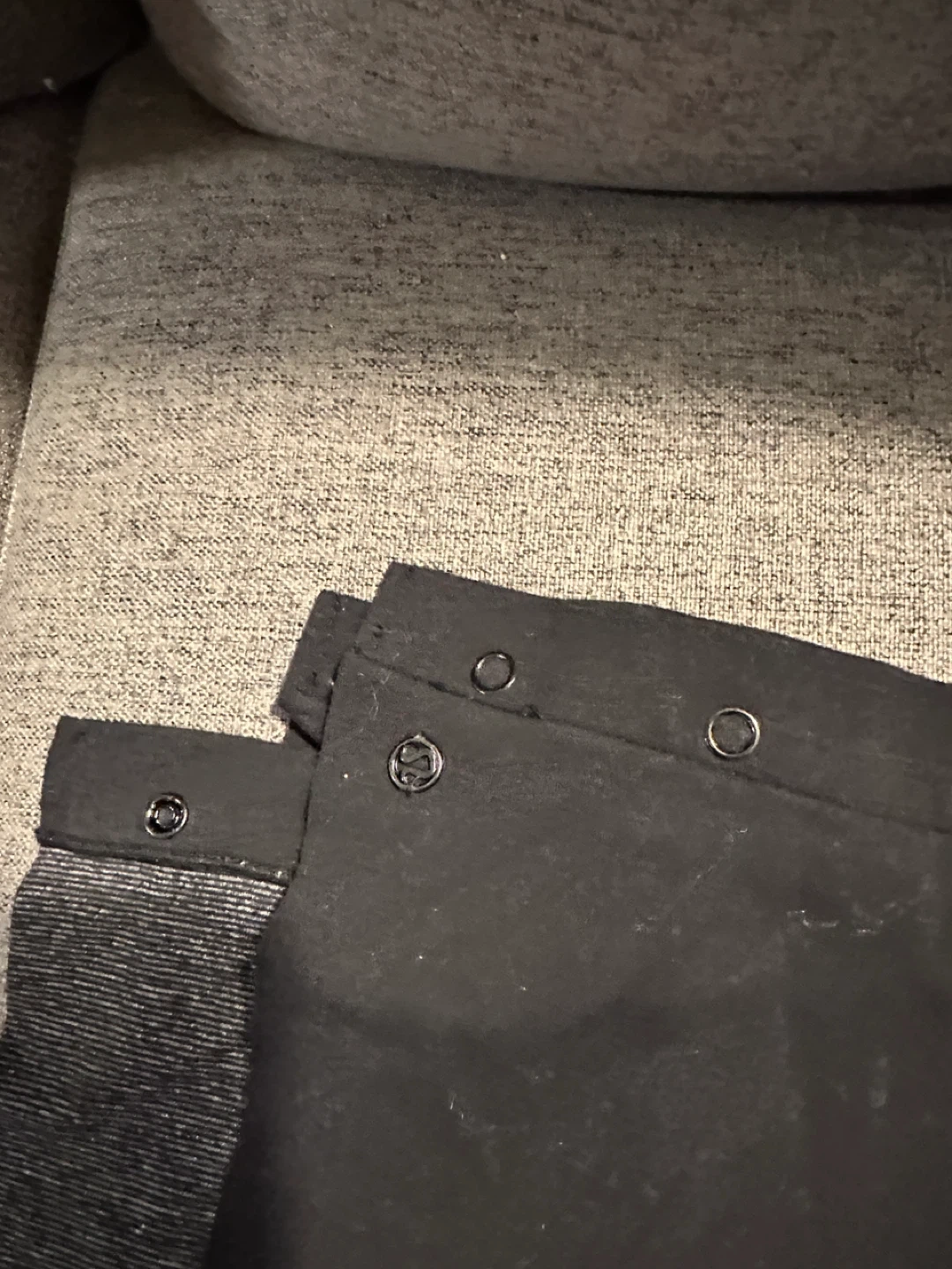299Selling a pair of Lululemon pants in a black and gray colour combination. They feature a row of snaps at the top. Perfect for workouts or casual wear!