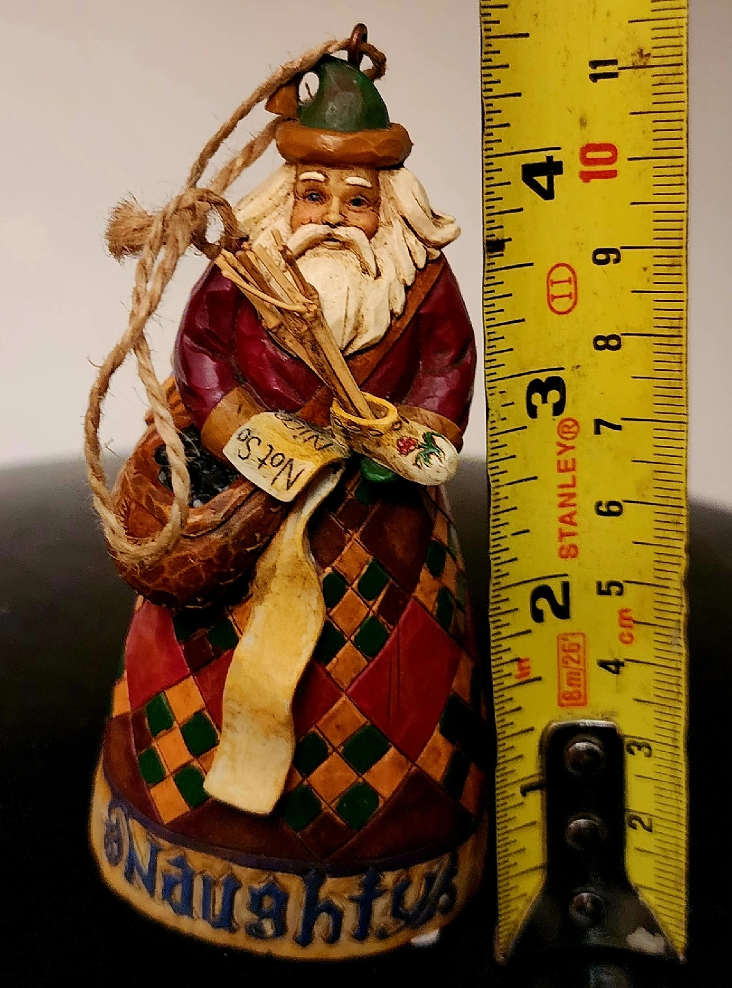 Here's a charming Santa figurine, perfect for adding a touch of holiday cheer to your home! He's holding a list that says "Naughty" on one side and "Nice" on the other. A tape measure in one of the images suggests the figurine is approximately 3.5 inches tall.