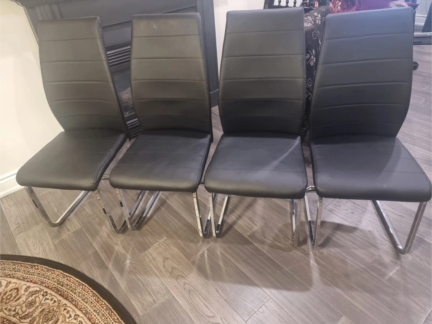 Buy & SellSet of 4 Black Leather Dining ChairsSet of 4 Black Leather Dining Chairs$120Selling a set of 4 dining chairs in black!WHERE TO MEETCheck LocationView MapSELLERAyaan BerryWestney Heights151 review2 chats·2 favorites·77 viewsSEND CHAT TO SELLERHi Ayaan Berry! I’m interested in your listing.Hi Ayaan Berry! I’m interested in your listing.Get the Karrot app to chatSign In to chat