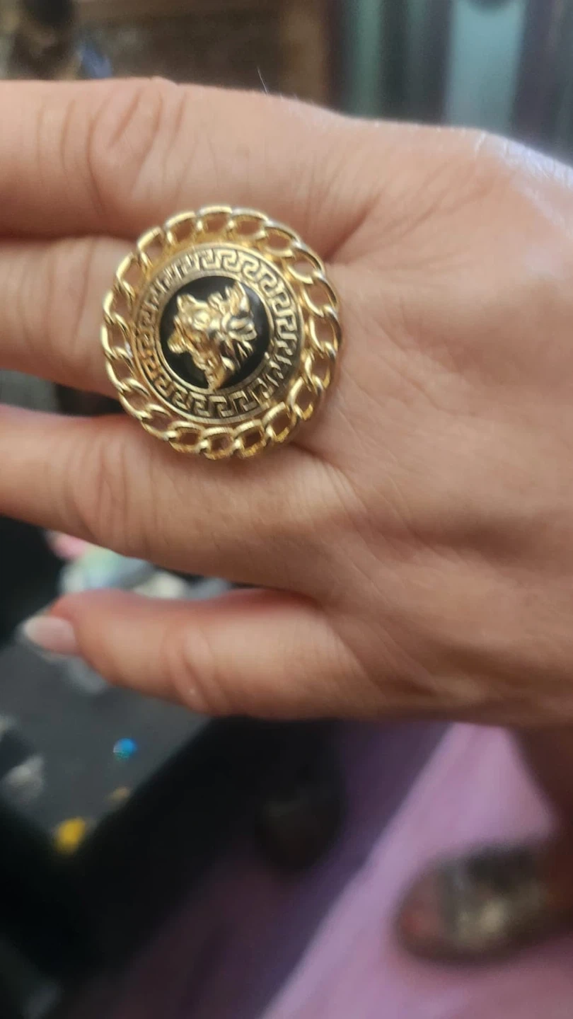 Selling a Versace gold-tone ring and bracelet set. Both pieces feature the iconic Medusa logo. They are in good condition!
