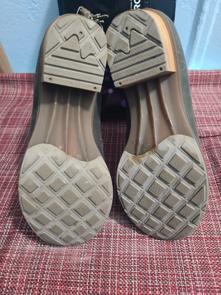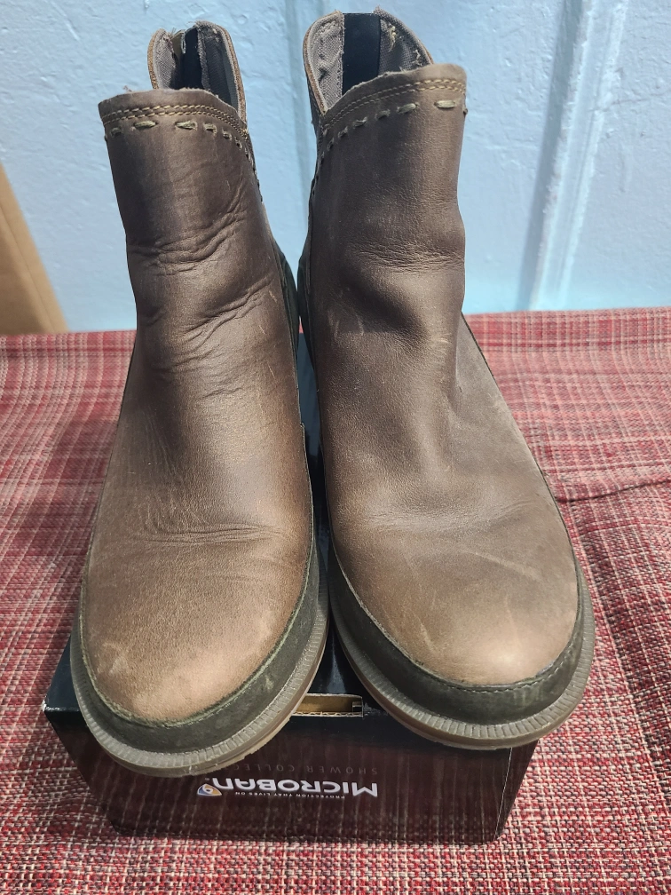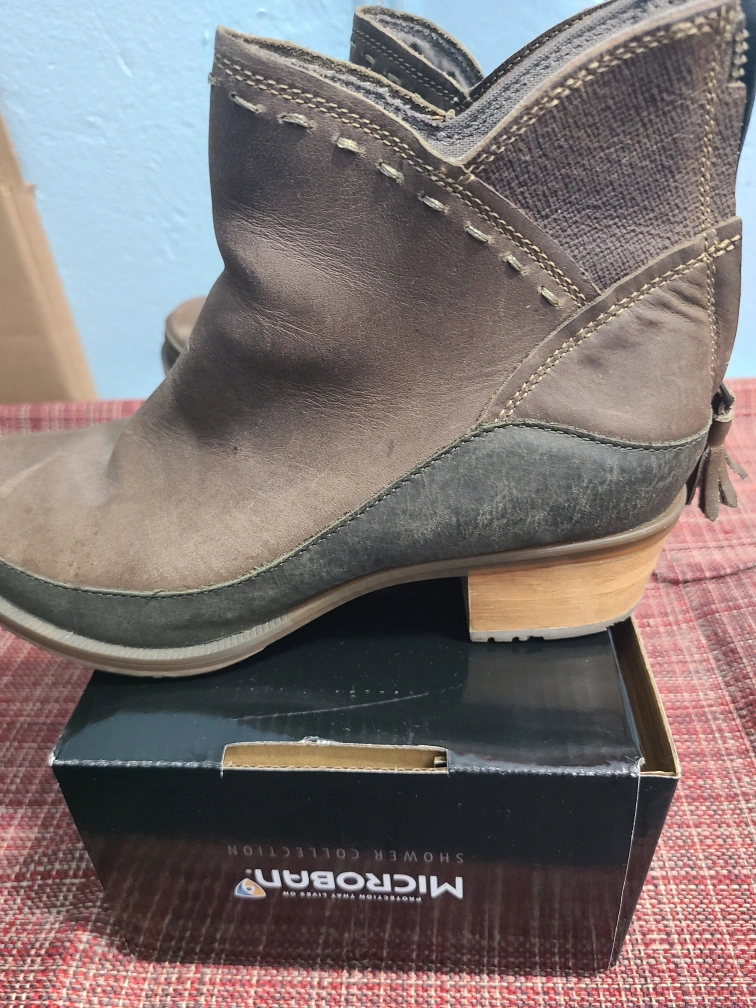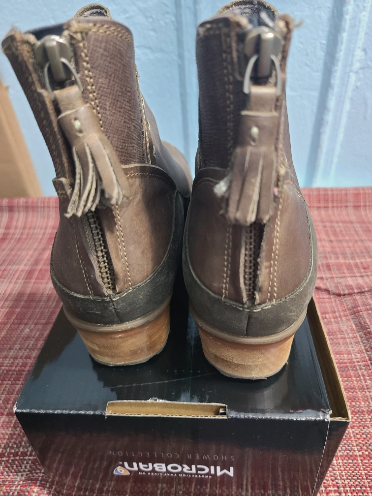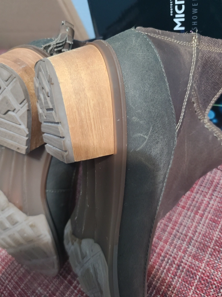 160Selling a pair of Timberland brown leather heeled ankle boots. They show some signs of wear but are still in good condition.