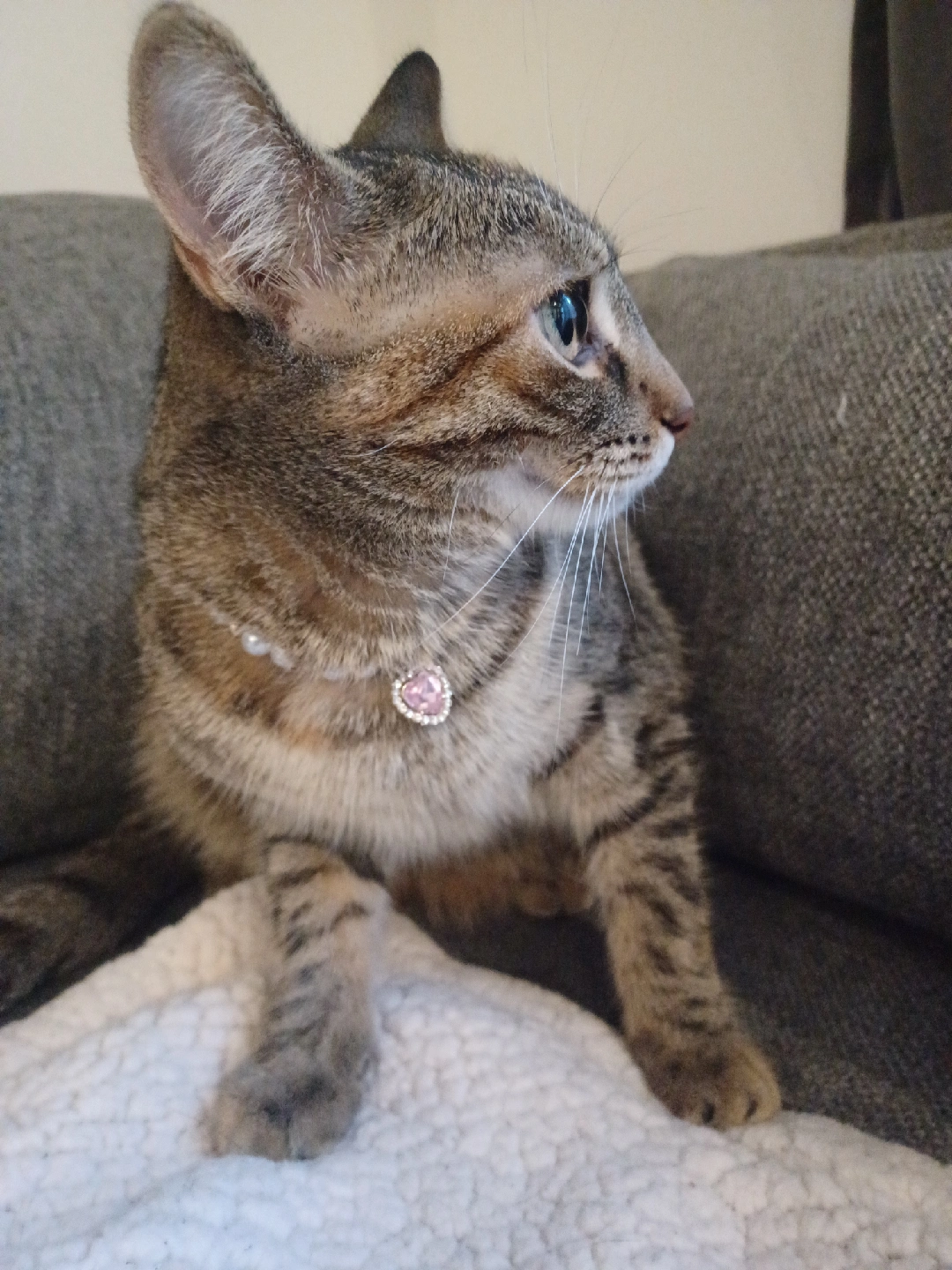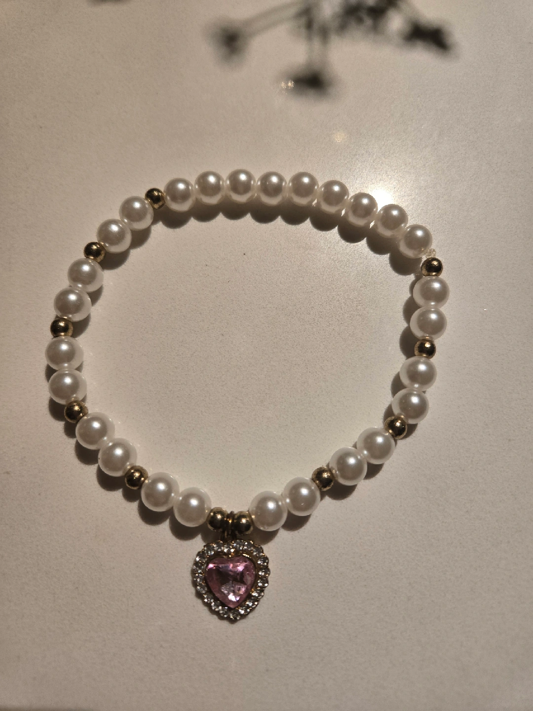 This adorable pearl cat collar features a cute heart charm! It's purr-fect for dressing up your feline friend. It's in great condition and ready for a new home