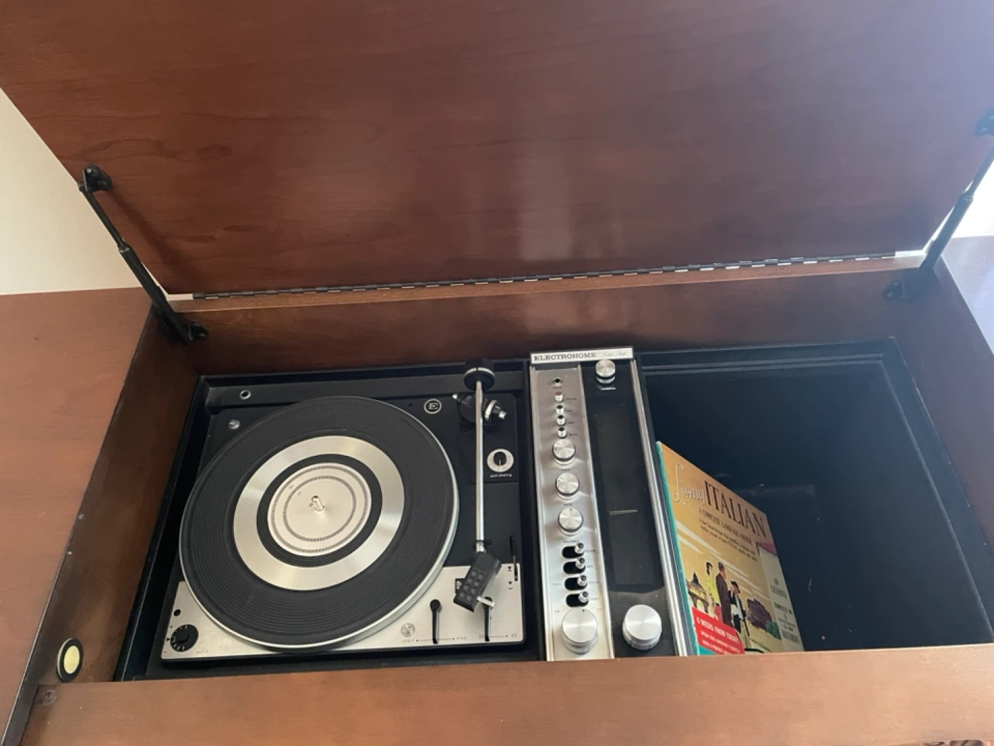 Selling a vintage Electrohome record player console! It's a beautiful piece of furniture and a functional record player all in one. Perfect for adding a touch of retro charm to your home. It also has am/fm radio. Built in speakers.