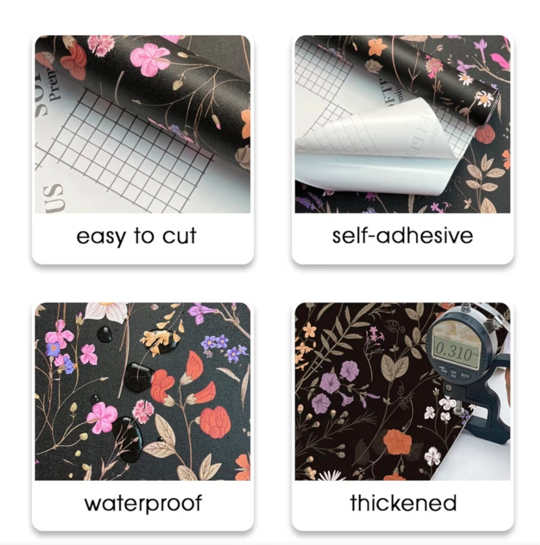 Traditional in nature, this delicate wallpaper pattern will transform your interior space into a soothing secret garden. Create an atmosphere full of calm and soothing energy in any room with these delicate botanicals. It's self-adhesive, waterproof, and easy to cut. It's also thickened for better durability and a premium feel! 17.3"x118"