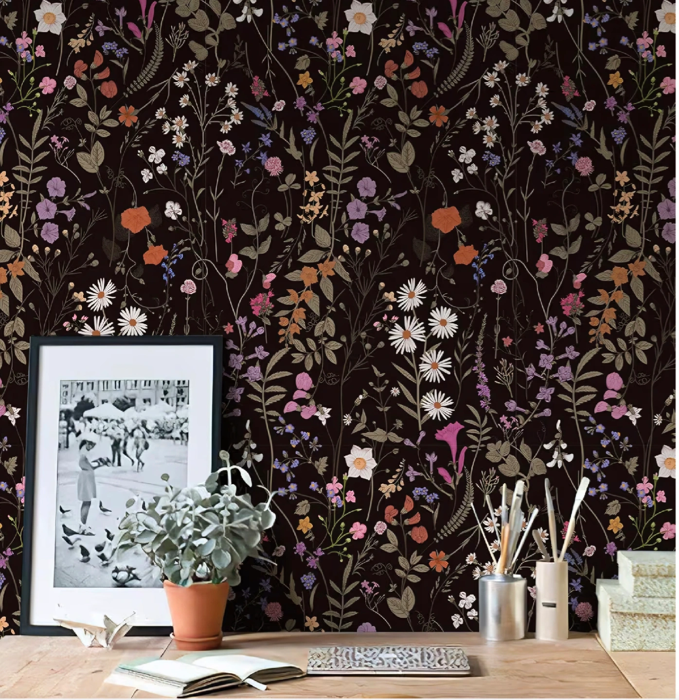 Dark Floral Peel & Stick Wallpaper, Textured 17.3"x118"
