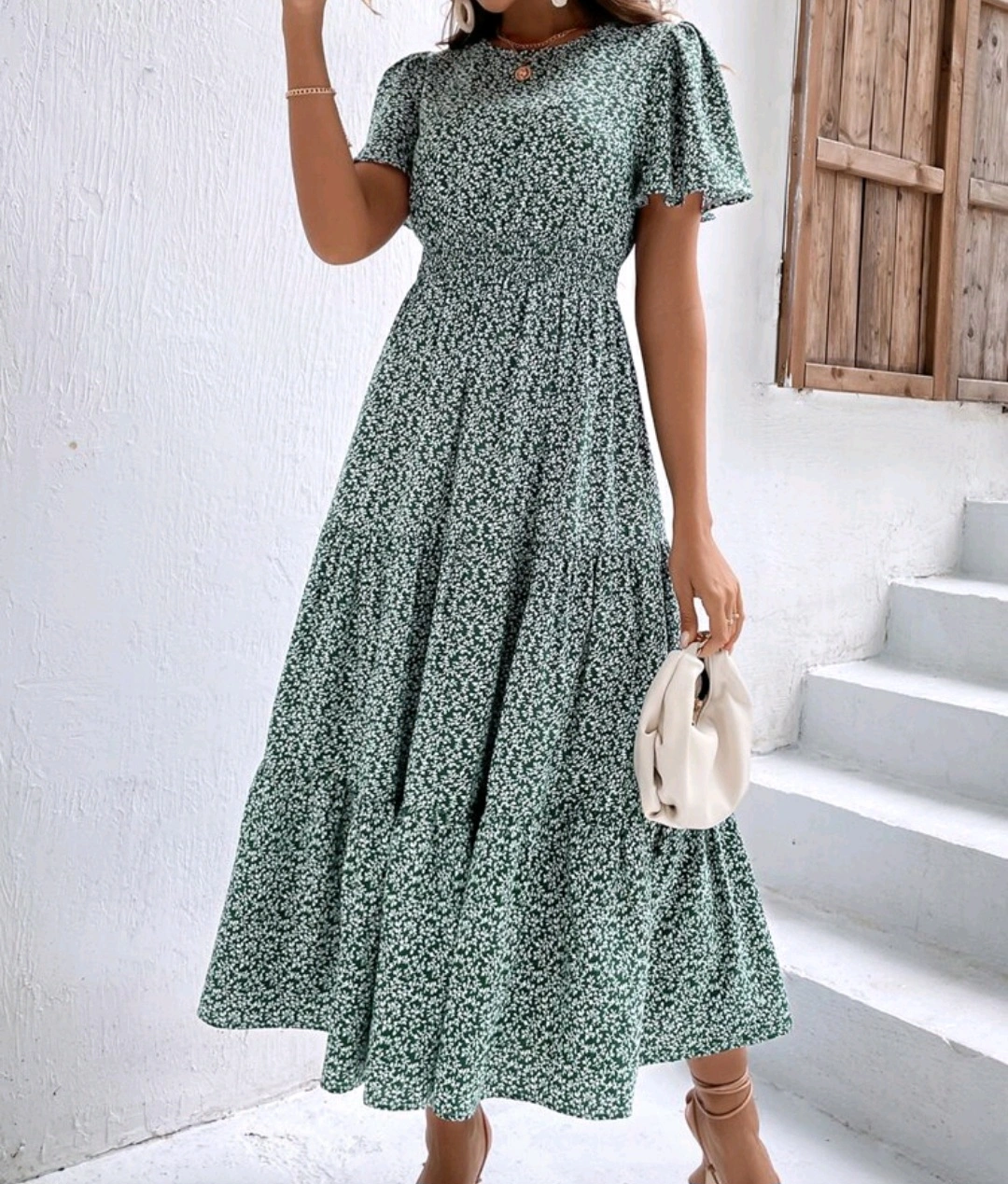 65This is a lovely Shein maxi dress in a green floral pattern. It's a size small in perfect condition and dry-cleaned. Worn twice only.