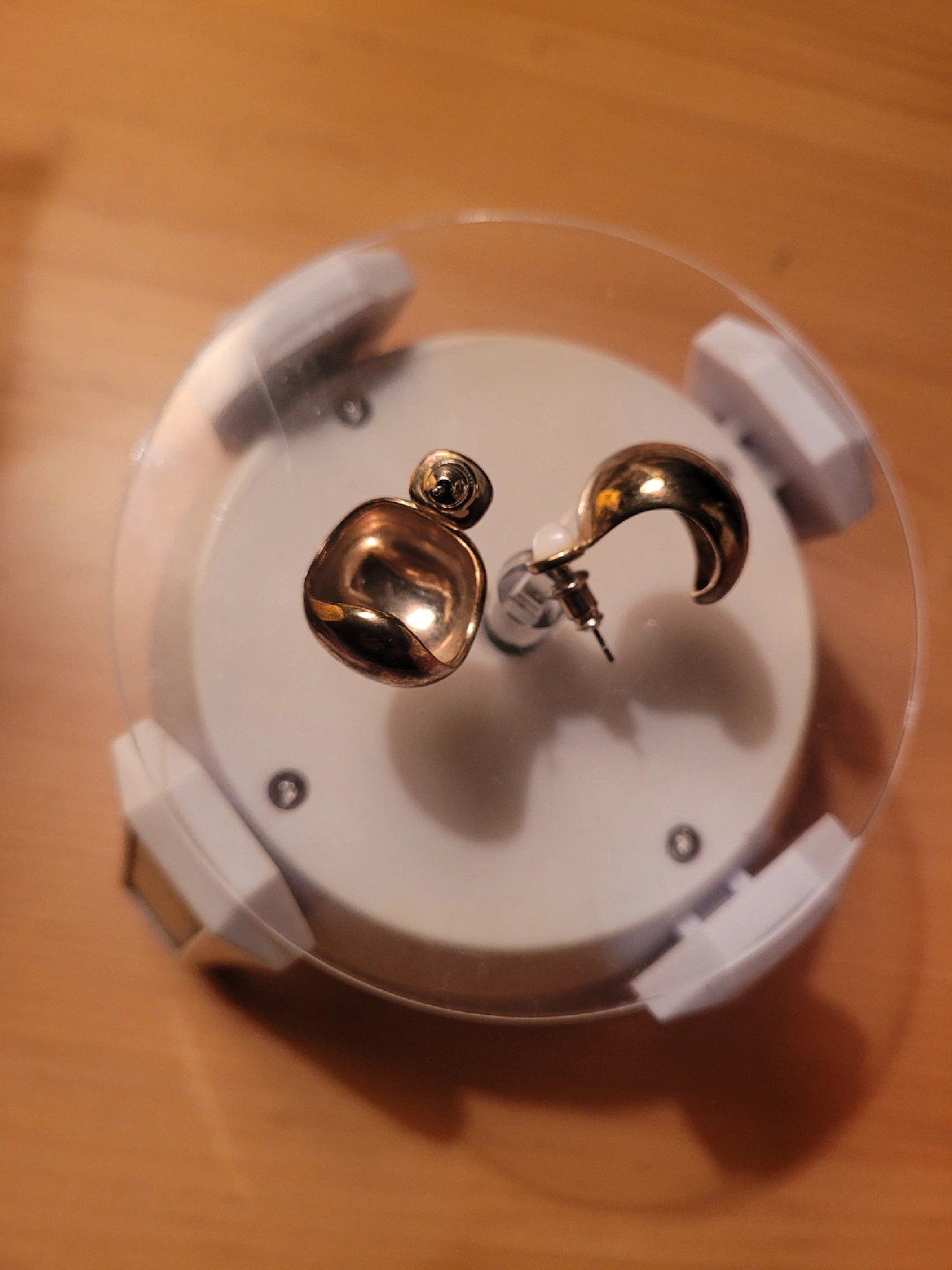 1000+Selling a pair of gold-tone earrings. They have a unique, curved design that catches the light beautifully. Perfect to add a touch of elegance to any outfit!