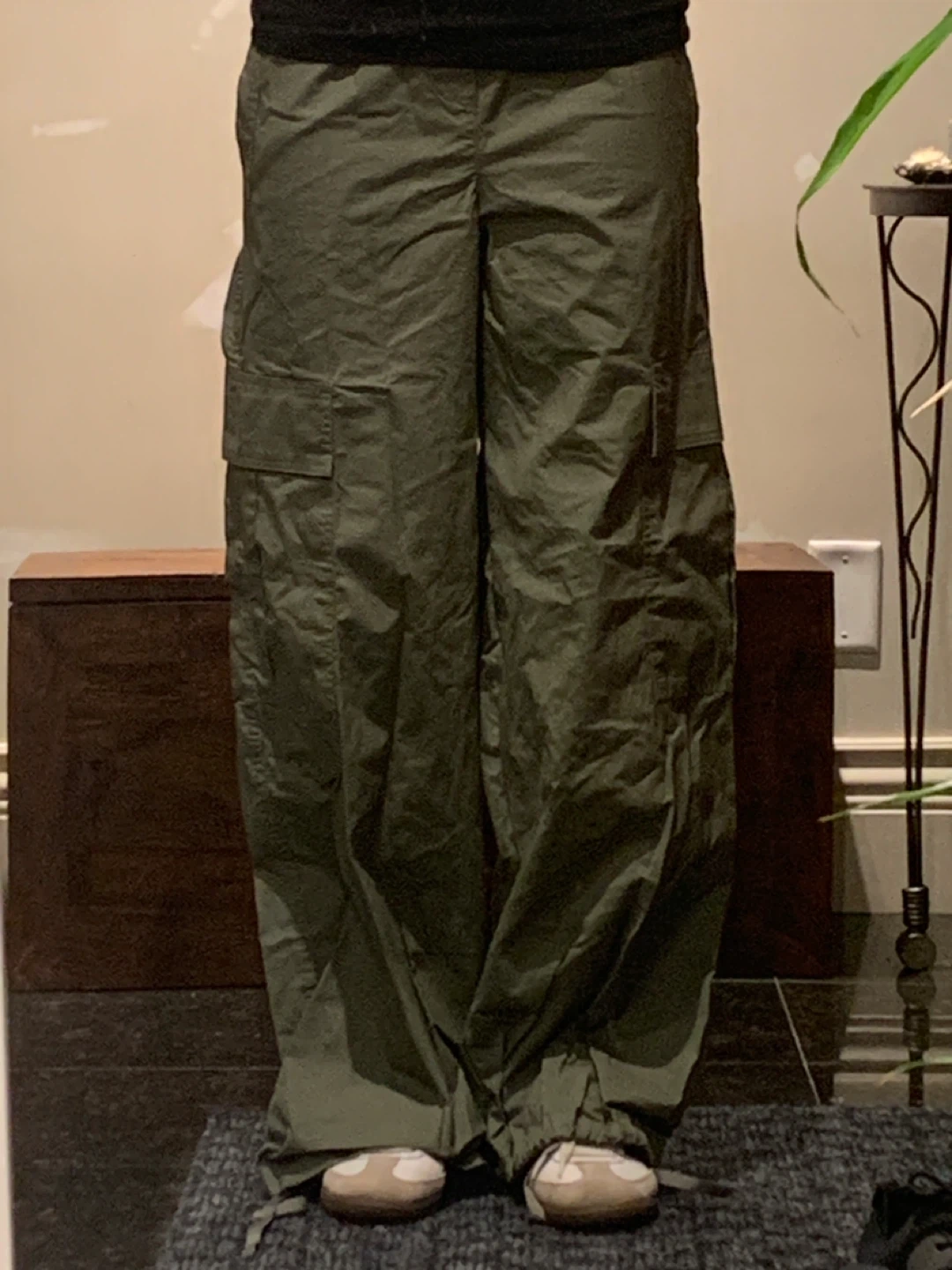 Selling a pair of olive green cargo pants. They're unused and need a new home. The wide-leg baggy style is super comfy and stylish. Perfect for everyday wear or outdoor adventures!