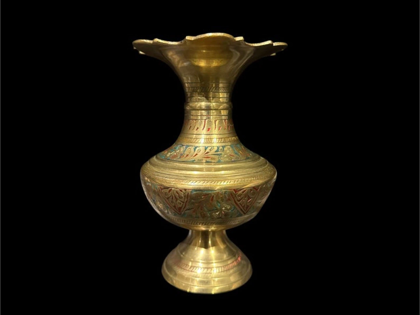 Beautiful brass vase with intricate engraved designs! It's a lovely piece to add a touch of elegance to any room. The vase is in great condition and ready to find a new home