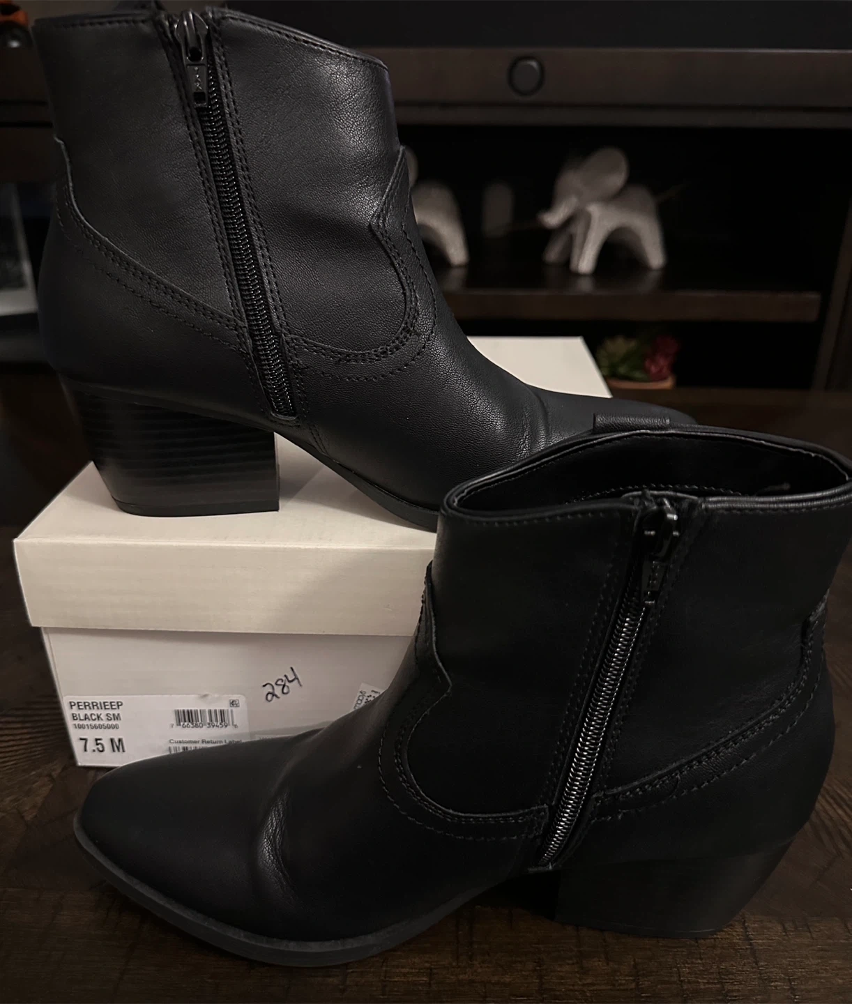Selling a pair of black Perrieep ankle boots in size 7.5 M. These stylish boots are in great condition and come with the original box. Perfect for adding a touch of chic to any outfit!