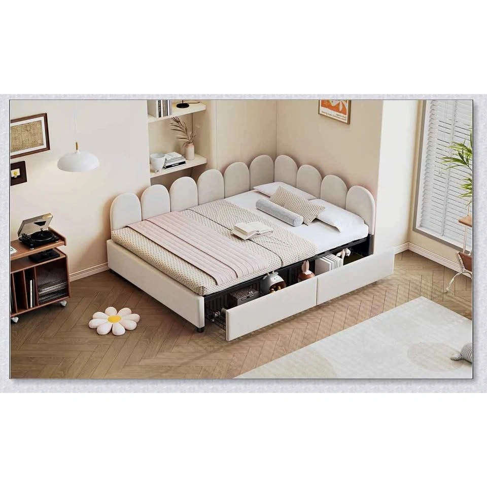 The velvet upholstery gives a plush and sumptuous feel, enhancing your comfort level while using the daybed. The drawers are spacious enough to store various items, helping you maintain an organized living space. The corner-friendly design saves space and adds a unique touch to your room layout. Versatile usage as both a sofa and a bed makes it highly practical for different needs. Number F12