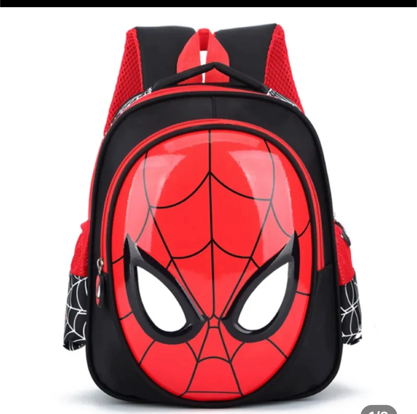 This is a cute Spiderman backpack for kids! It's blue and red, and features the iconic Spiderman mask design. The backpack measures approximately 11.8 inches in height, 9.06 inches in width, and 3.94 inches in depth