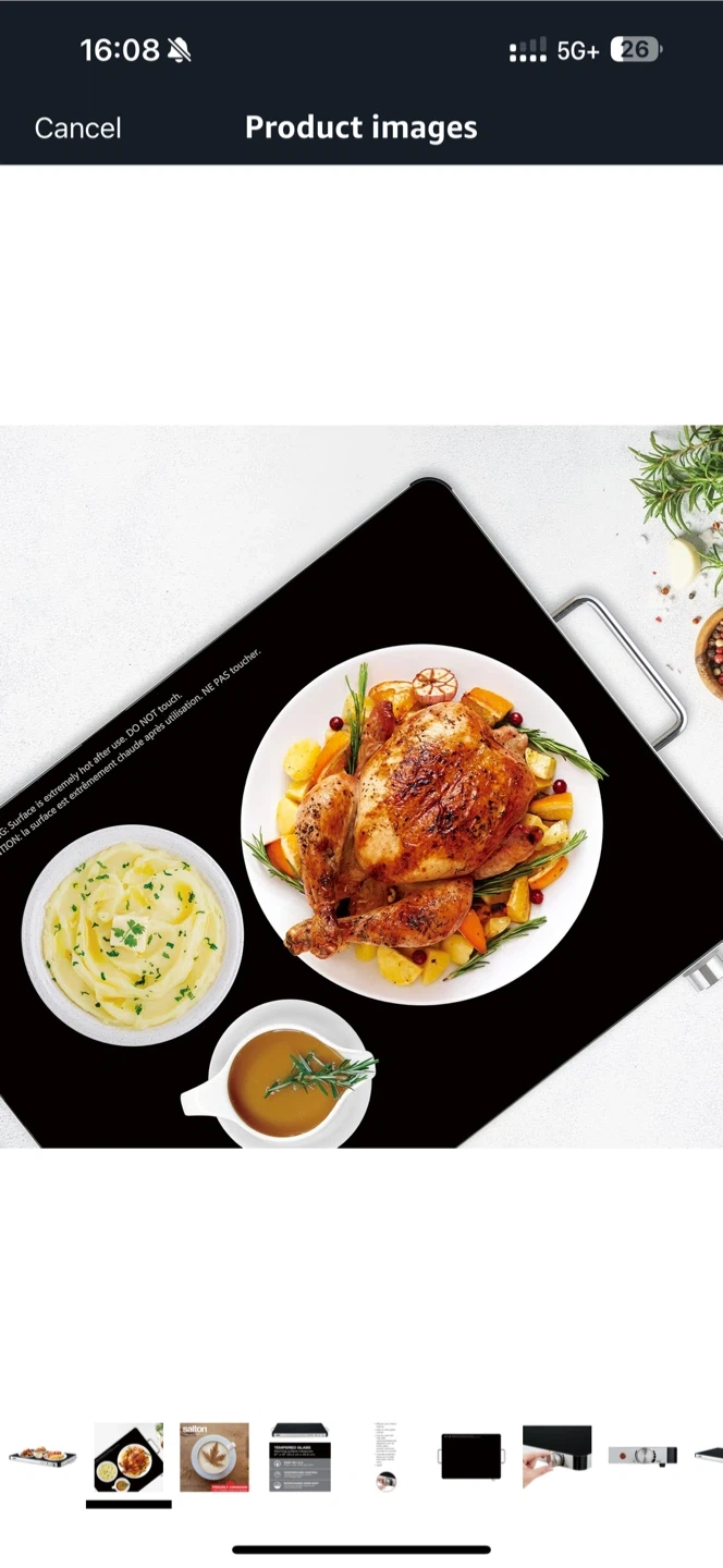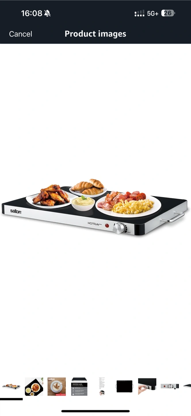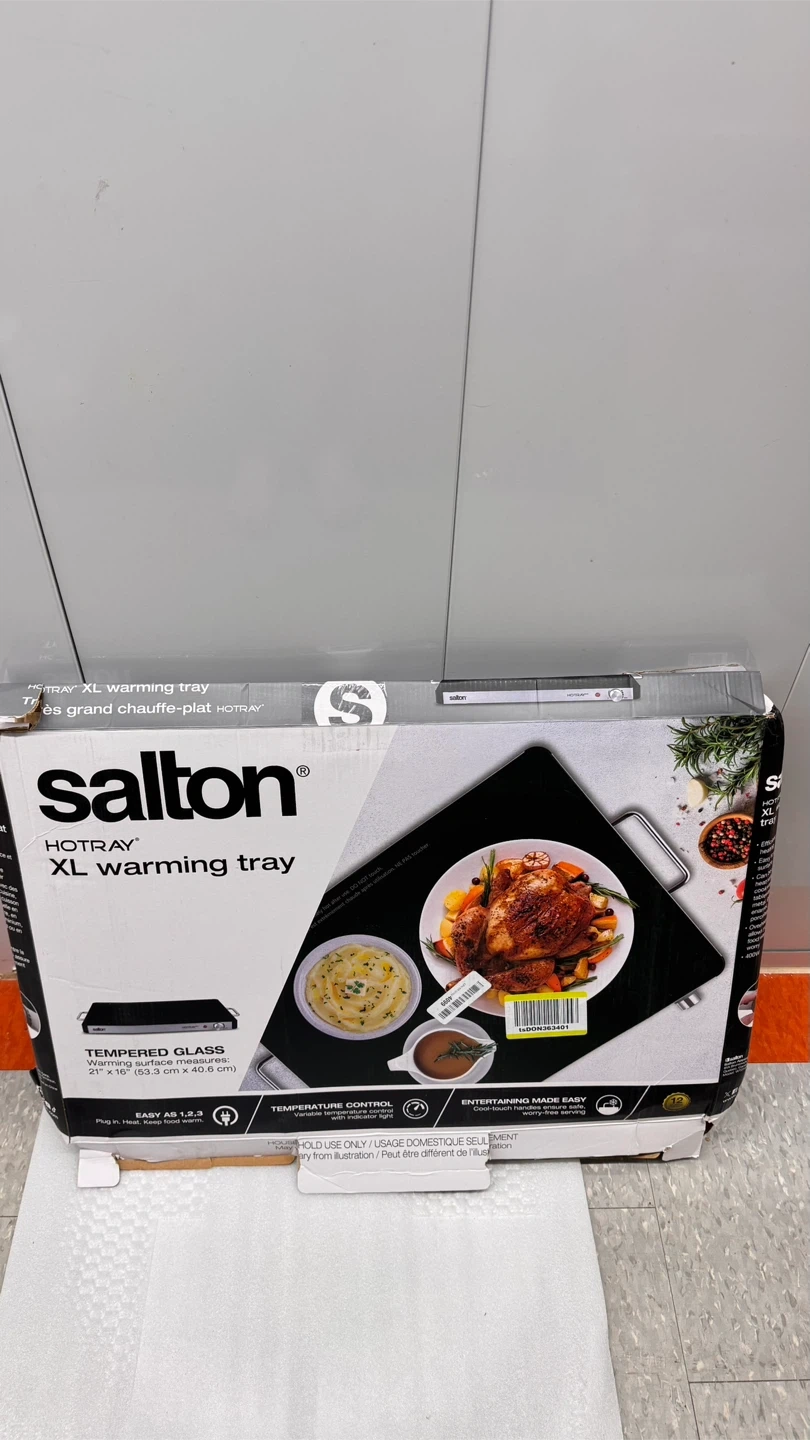 I have a brand new Salton HOTRAY XL warming tray still in its original box! It's perfect for keeping food warm during gatherings or parties. The warming surface measures 21" x 16.5" (53.3 cm x 41.9 cm) and features temperature control for versatile usage. Get ready to entertain with ease!