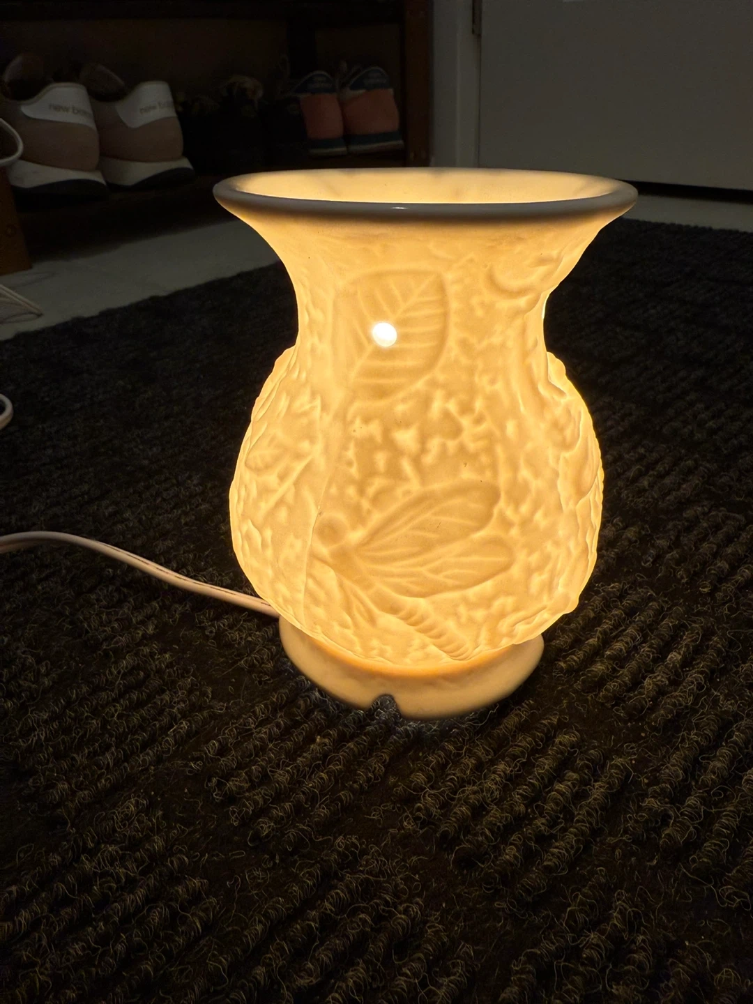 18This is a beautiful ceramic oil warmer featuring a dragonfly and leaf design. Discount for purchase of 2 or more