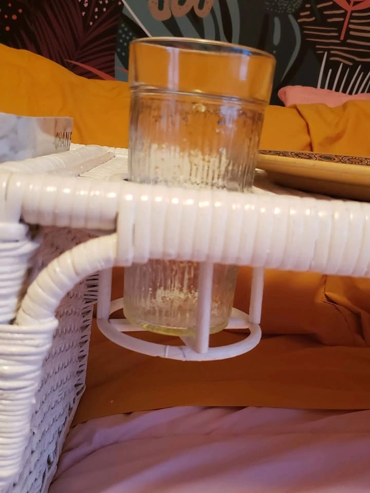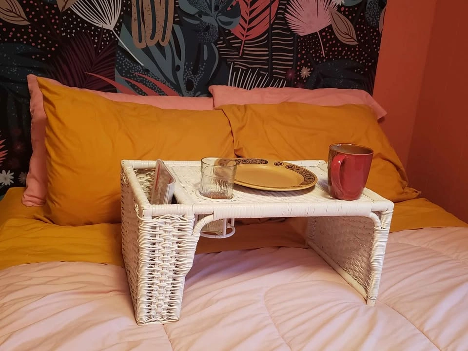 Vintage white wicker breakfast in bed or lap tray. 22 inches long by 13 inches wide by 10 inches high. Handles on both sides, magazine or newspaper holder on one side and an enclosed cup holder for water. Really a cool piece. Wicker and paint are in great shape. No chips or broken pieces in the weaving. Could also be used as a lap desk for working. Pick up in Upper Lonsdale North Vancouver. Cross posted with Marketplace