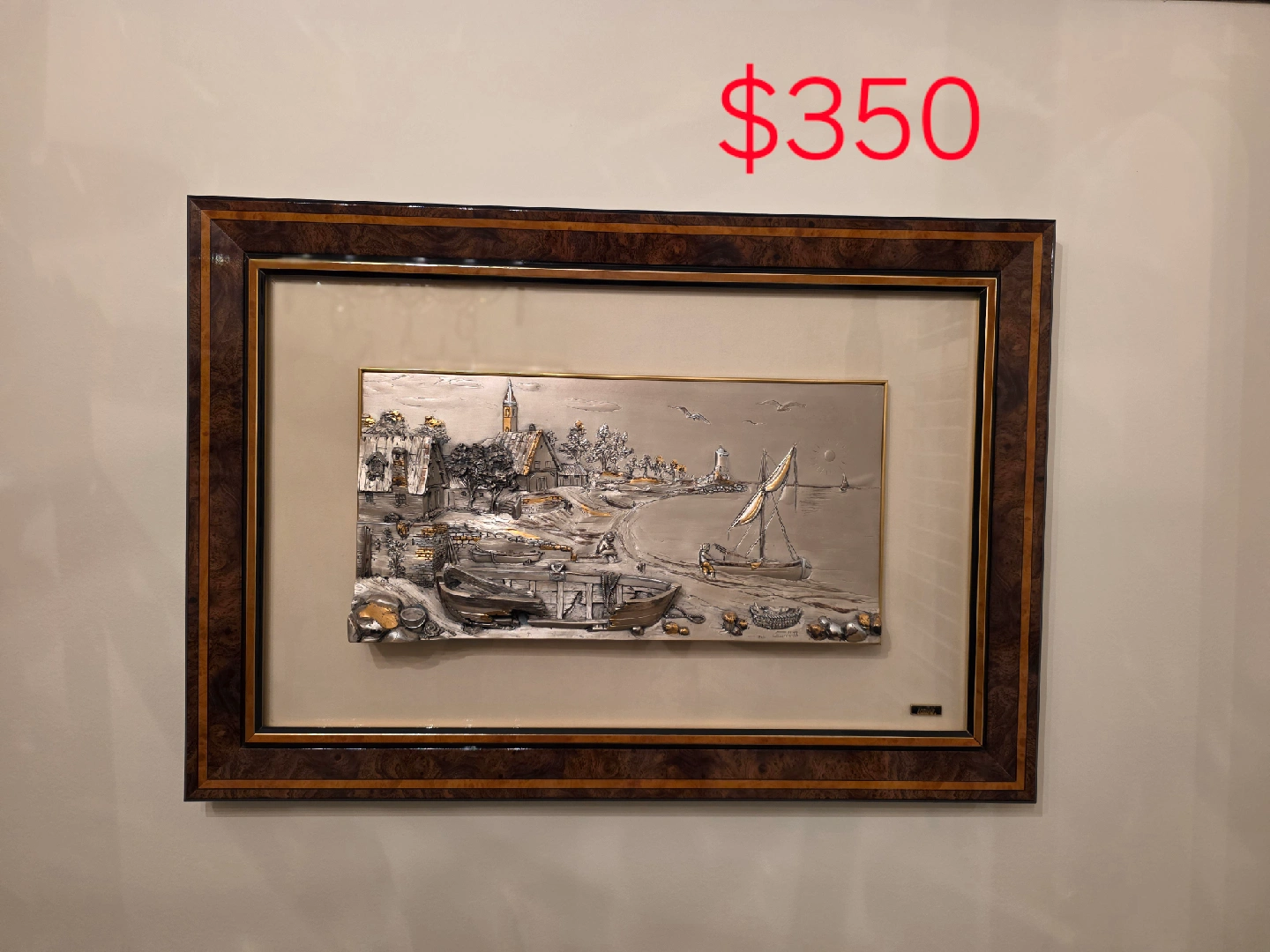 82Selling a collection of framed silver art pieces. Each piece features a unique design and is framed. Perfect for adding a touch of elegance to your home decor prices are on the pictures