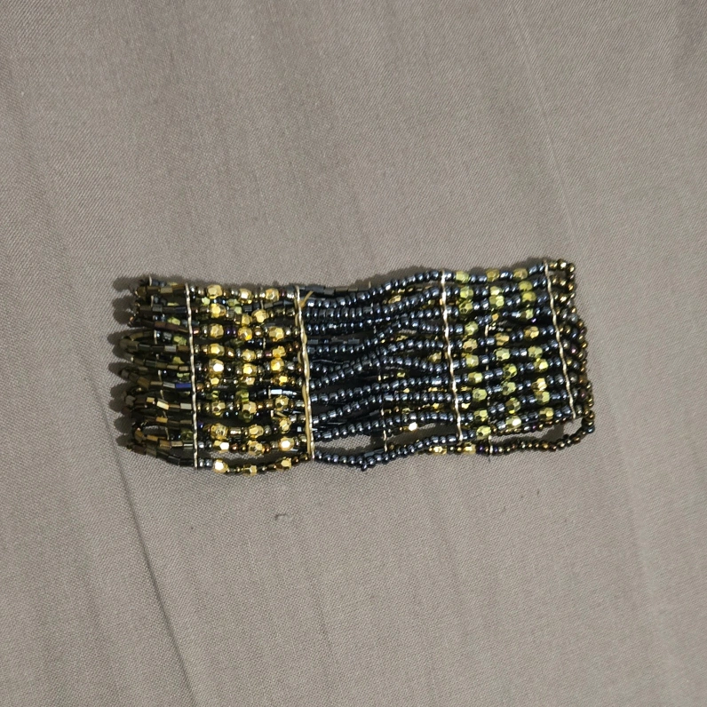 161This beaded bracelet features a mix of gold and black beads. It's a stylish accessory that can add a touch of elegance to any outfit. Perfect for dressing up or adding a little sparkle to your everyday look!