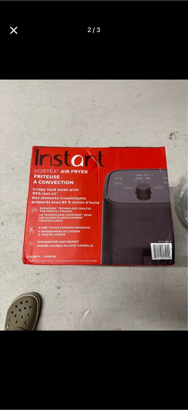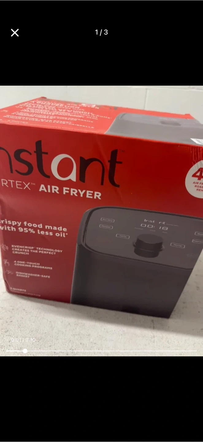 Selling an Instant Vortex Air Fryer. It makes crispy food with 95% less oil! It has EvenCrisp technology for the perfect crunch. It also has one-touch cooking programs and a dishwasher-safe basket. It's a 2quart size, and the box is included