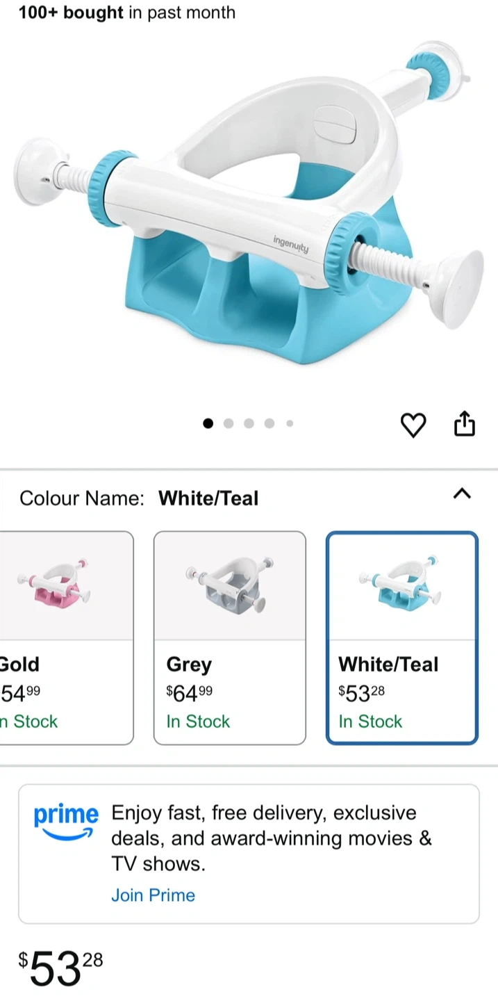 Selling a baby bath seat, all information about size/measurements and other information is in the pictures. The item goes for 50-65 dollars on Amazon depending on the color. It is in good condition and suction work perfectly.